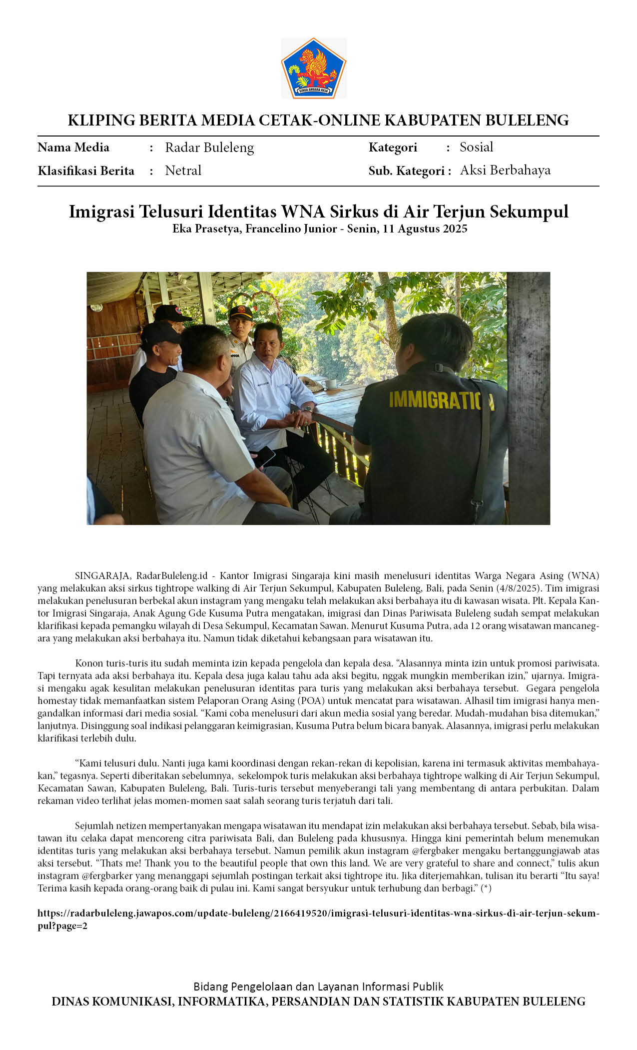 Imigrasi Telusuri Identitas WNA Sirkus di Air Terjun Sekumpul