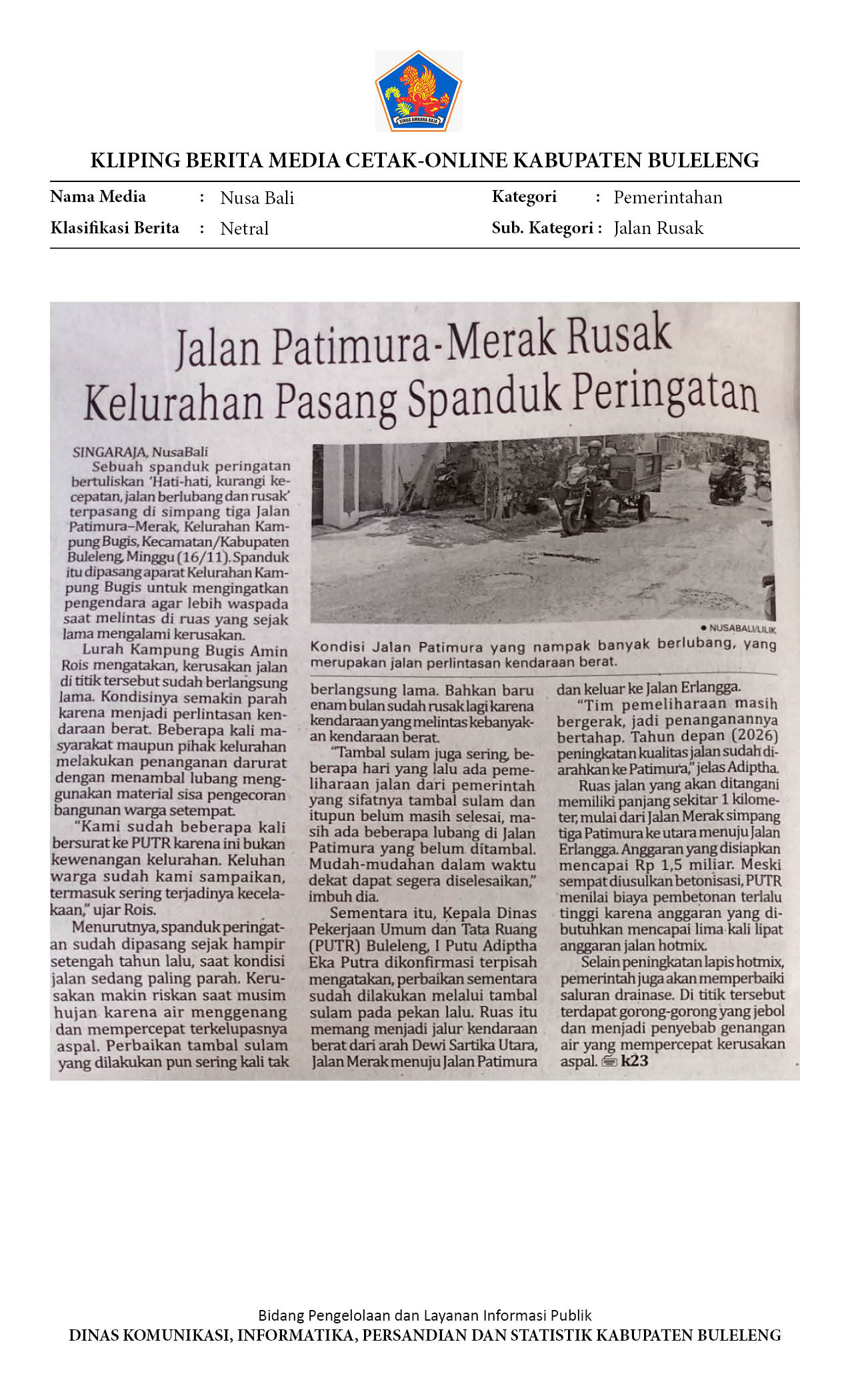 JALAN PATIMURA-MERAK RUSAK KELURAHAN PASANG SPANDUK PERINGATAN