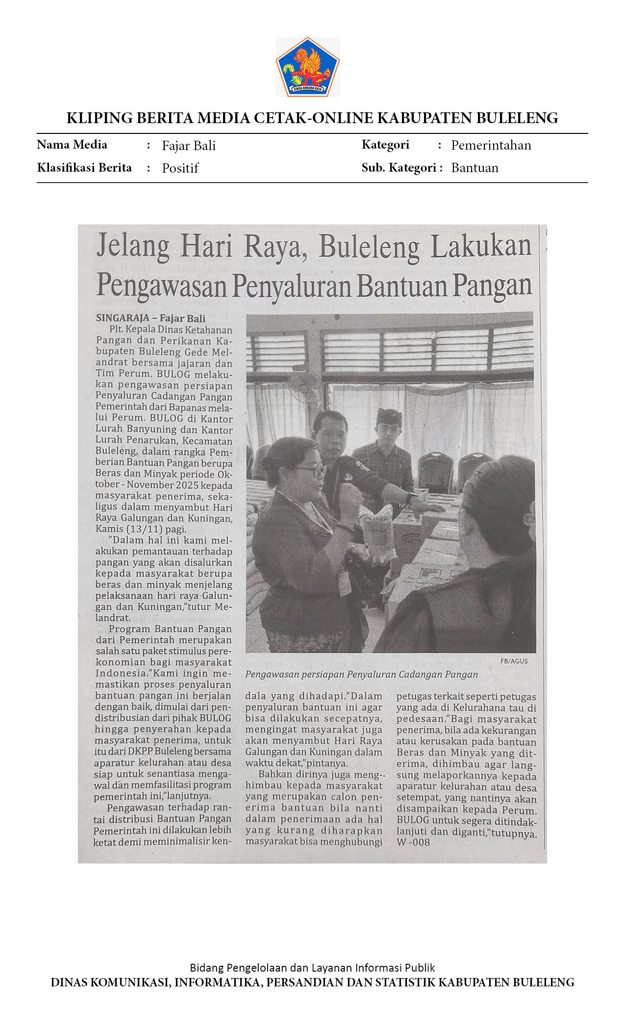 Jelang Hari Raya, Buleleng Lakukan Pengawasan Penyaluran Bantuan Pangan
