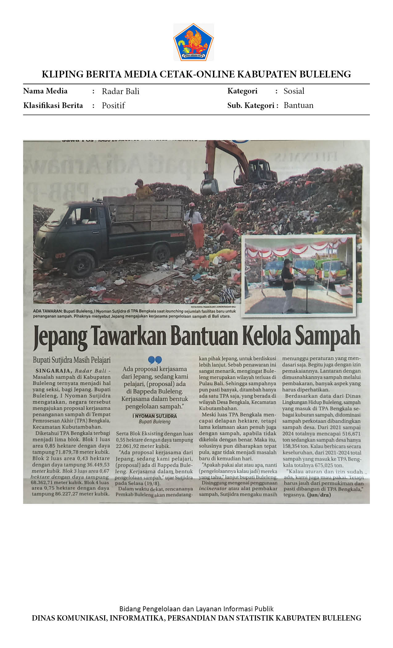 JEPANG TWARKAN BANTUAN KELOLA SAMPAH
