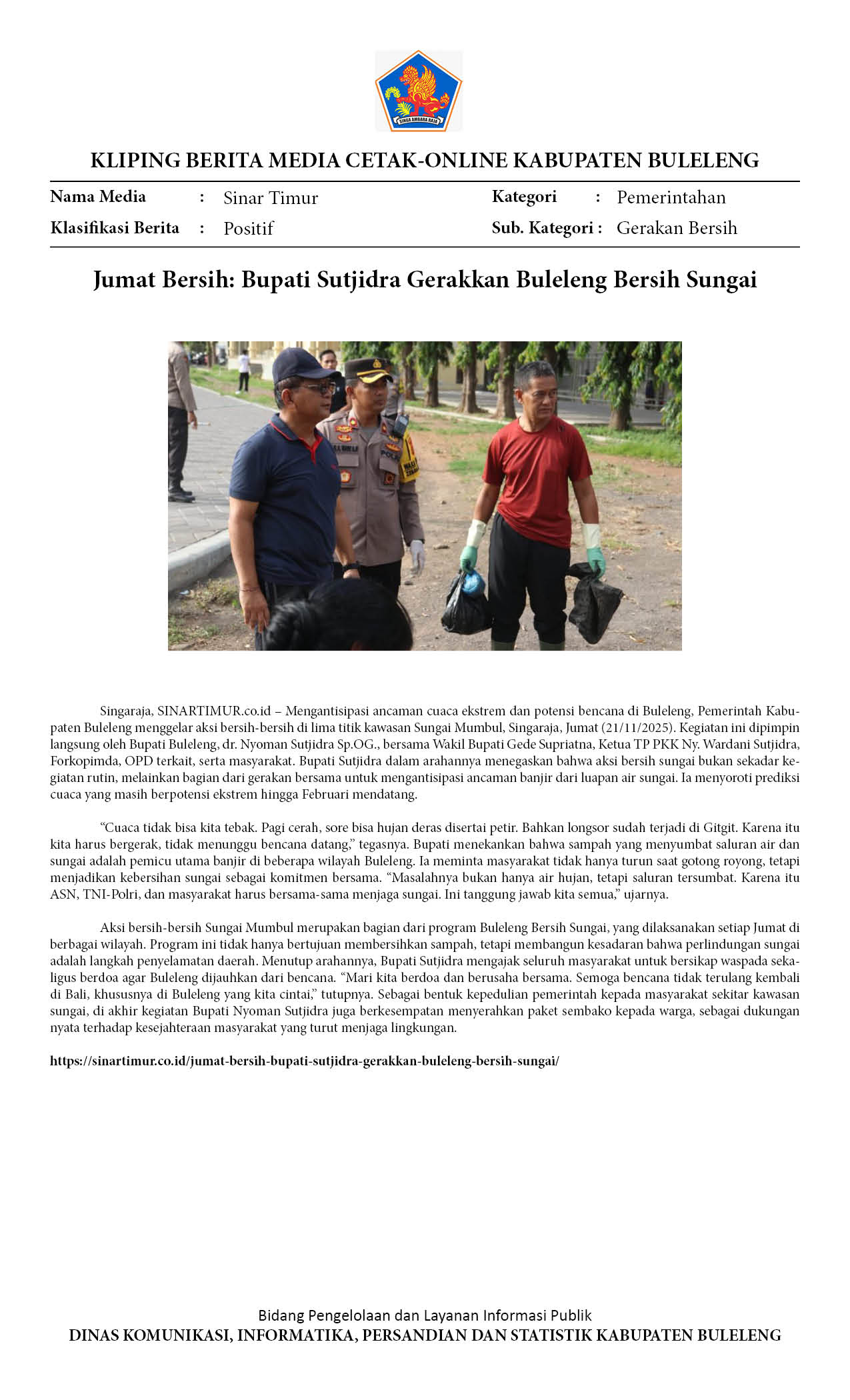 JUMAT BERSIH: BUPATI SUTJIDRA GERAKKAN BULELENG BERSIH SUNGAI