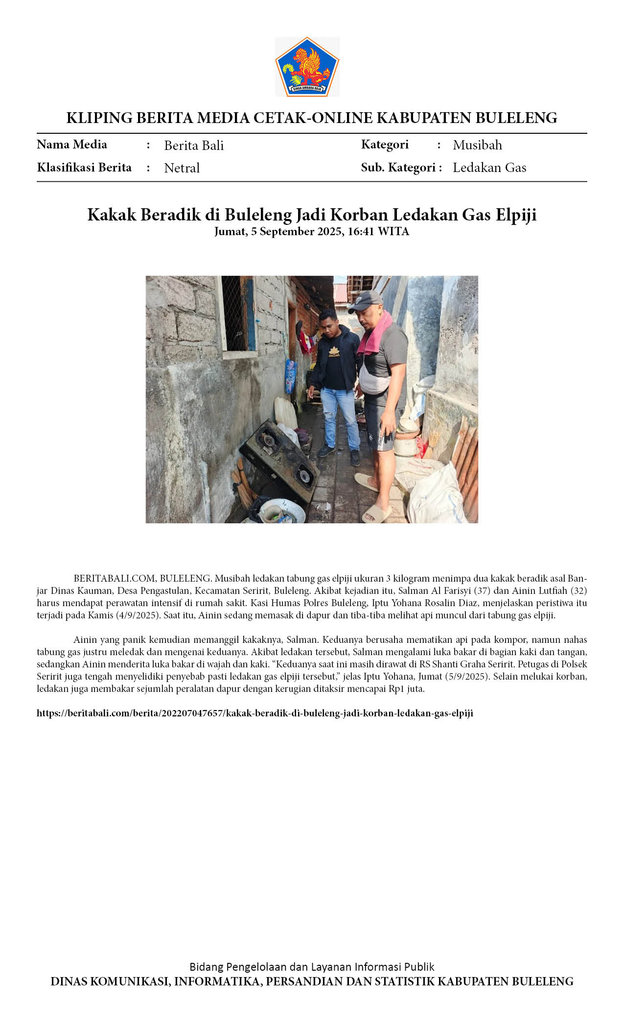 Kakak Beradik di Buleleng Jadi Korban Ledakan Gas Elpiji