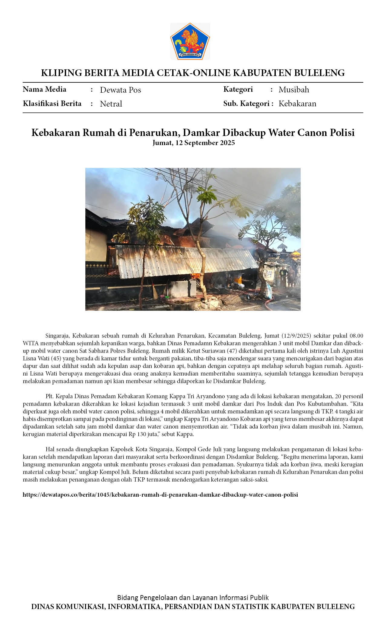 KEBAKARAN RUMAH DI PENARUKAN, DAMKAR DIBACKUP WATER CANON POLISI
