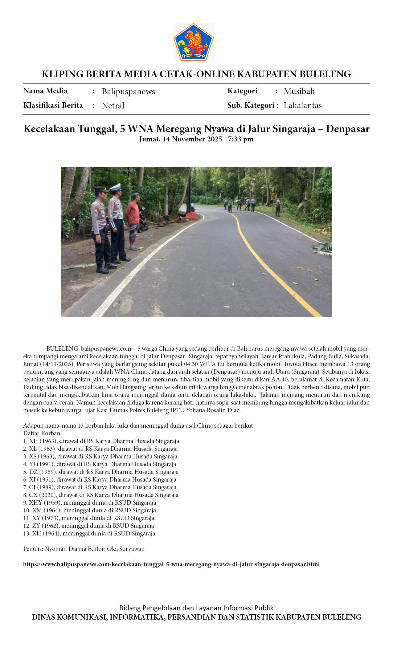 Kecelakaan Tunggal, 5 WNA Meregang Nyawa di Jalur Singaraja – Denpasar