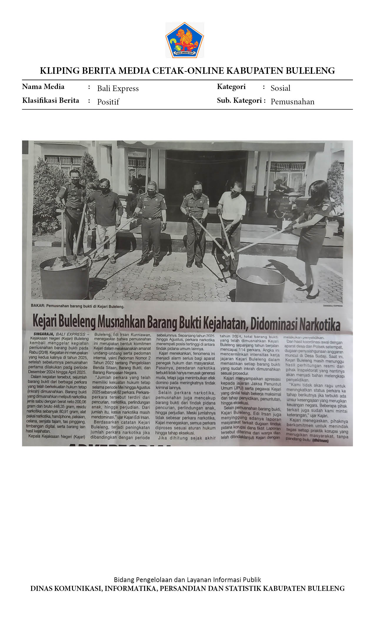 KEJARI BULELENG MUSNAHKAN BARANG BUKTI KEJAHATAN, DIDOMINASI NARKOTIKA
