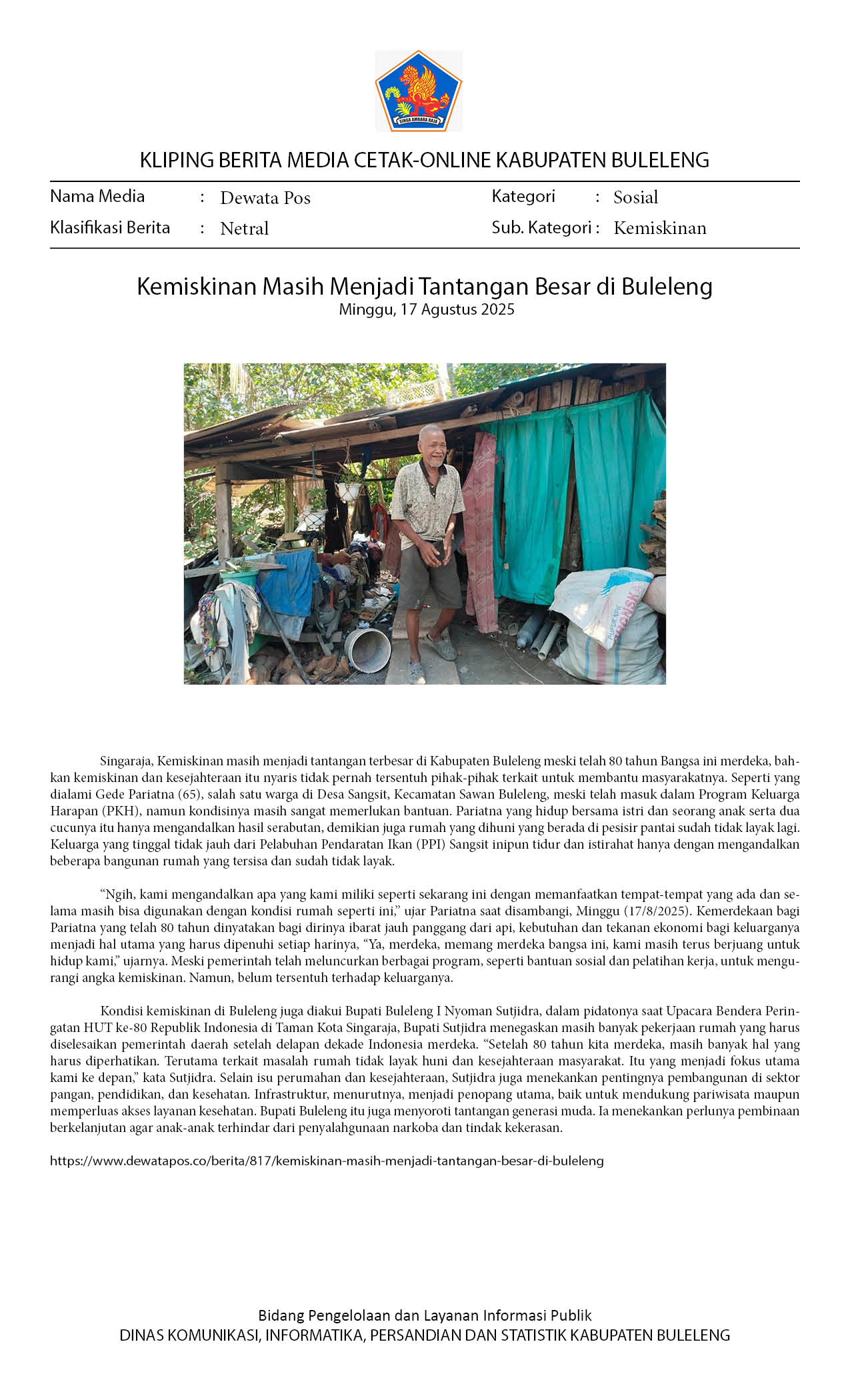 KEMISKINAN MASIH MENJADI TANTANGAN BESAR DI BULELENG