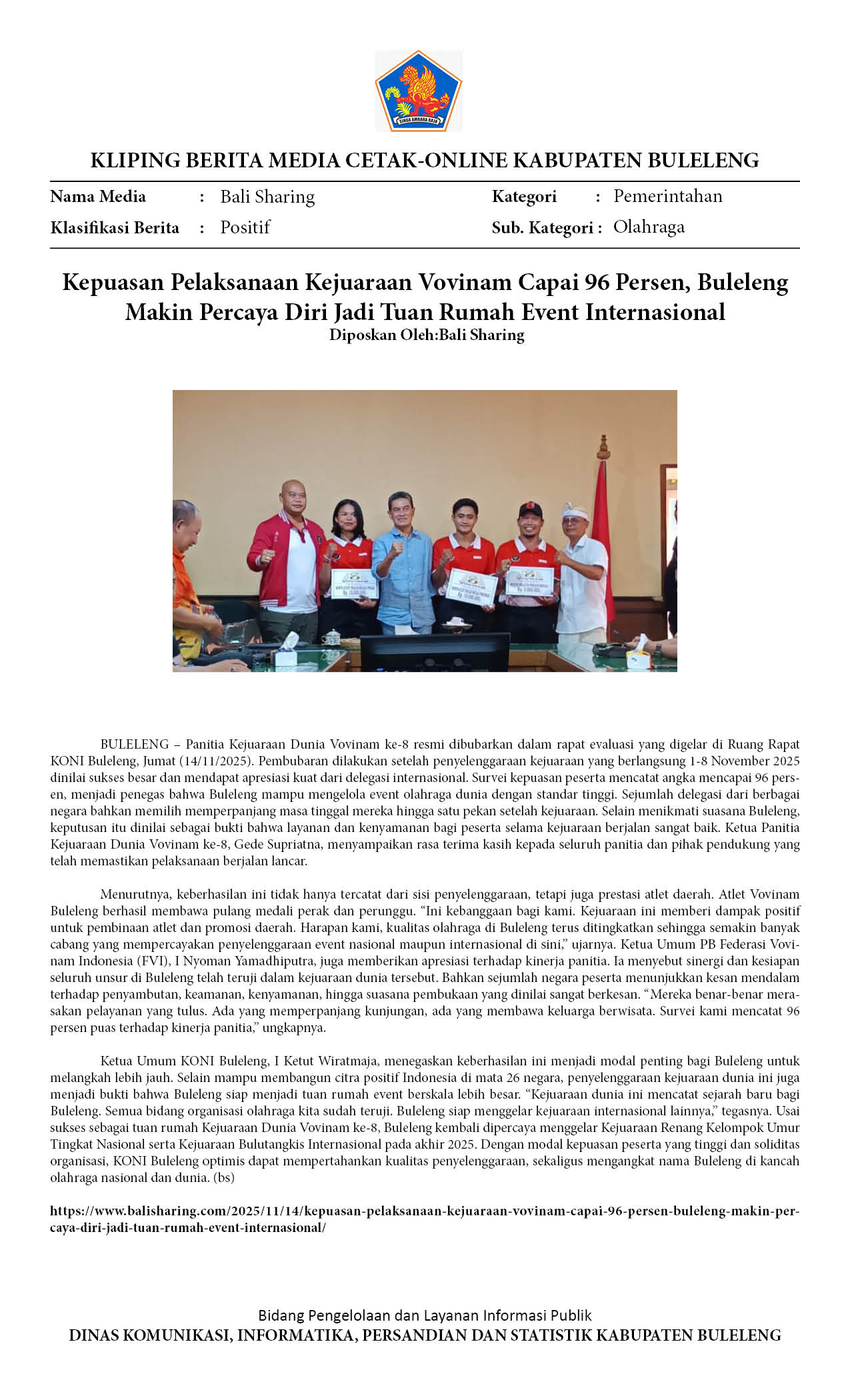 KEPUASAN PELAKSANAAN KEJUARAAN VOVINAM CAPAI 96 PERSEN, BULELENG MAKIN PERCAYA DIRI JADI TUAN RUMAH EVENT INTERNASIONAL