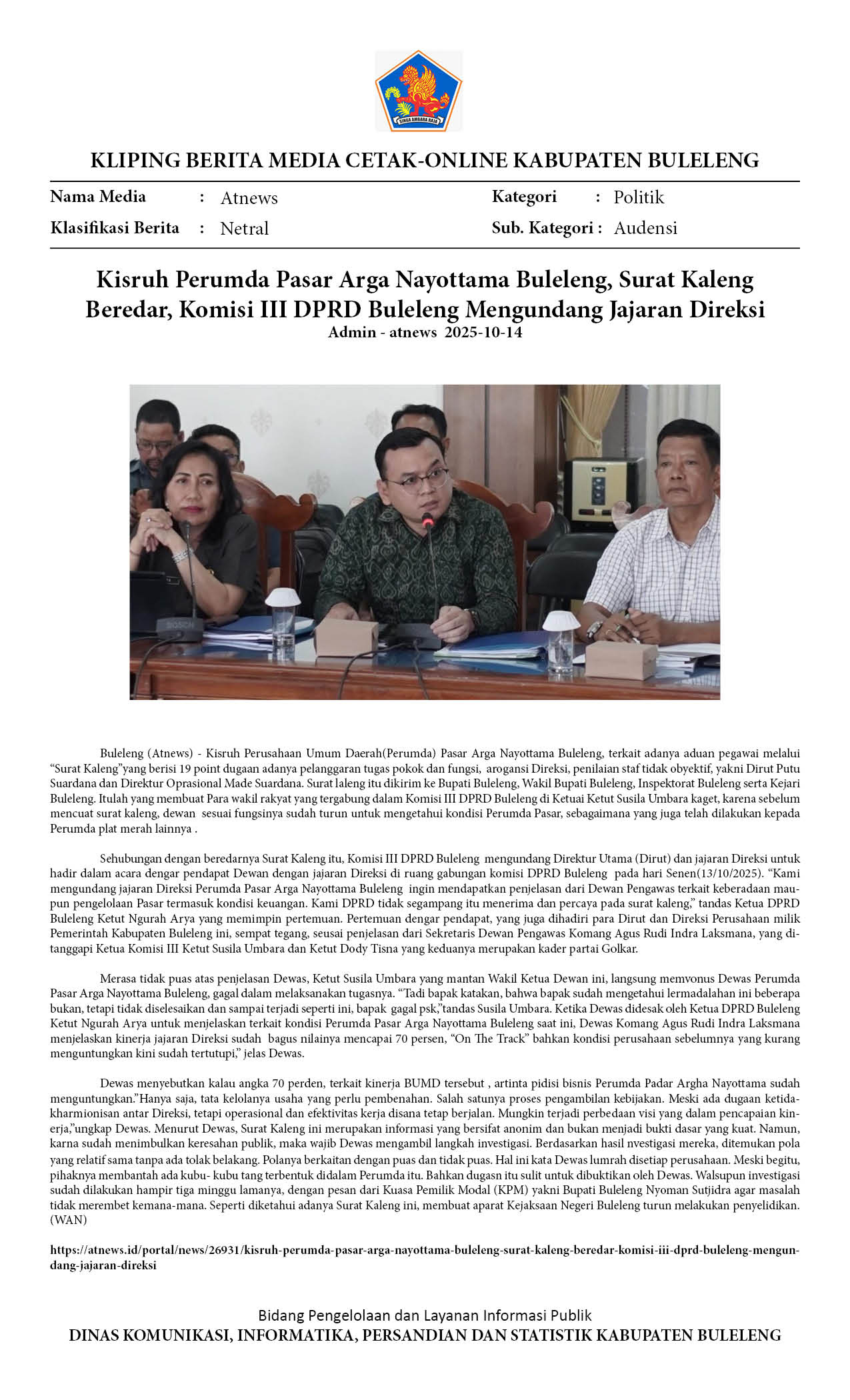 Kisruh Perumda Pasar Arga Nayottama Buleleng, Surat Kaleng Beredar, Komisi III DPRD Buleleng Mengundang Jajaran Direksi
