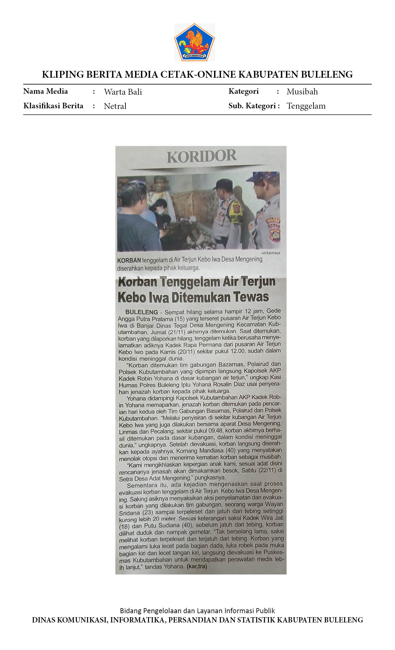 KORBAN TENGGELAM AIR TERJUN KEBO IWA DITEMUKAN TEWAS