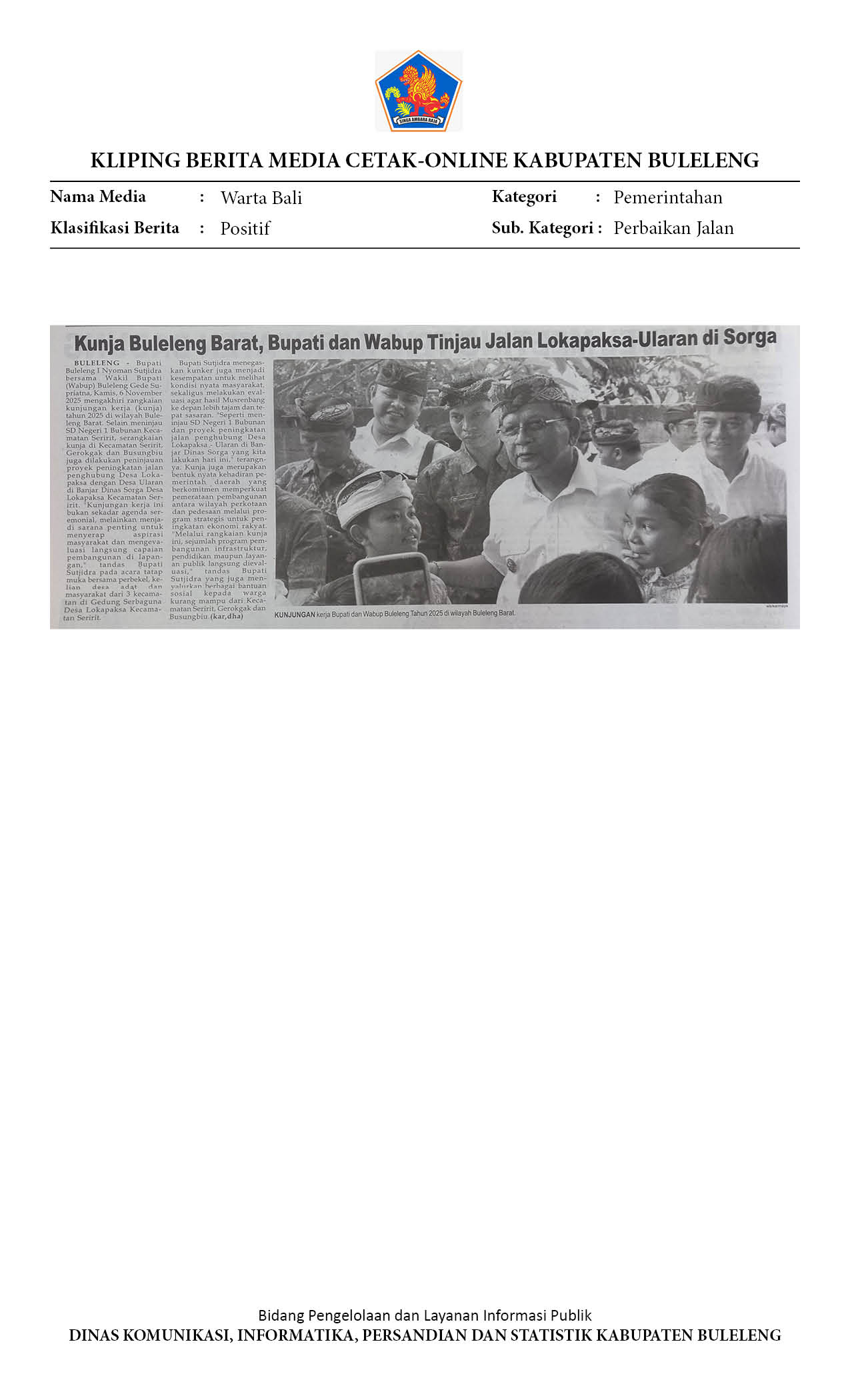 KUNJA BULELENG BARAT, BUPATI DAN WABUP TINJAU JALAN LOKAPAKSA-ULARAN DI SORGA