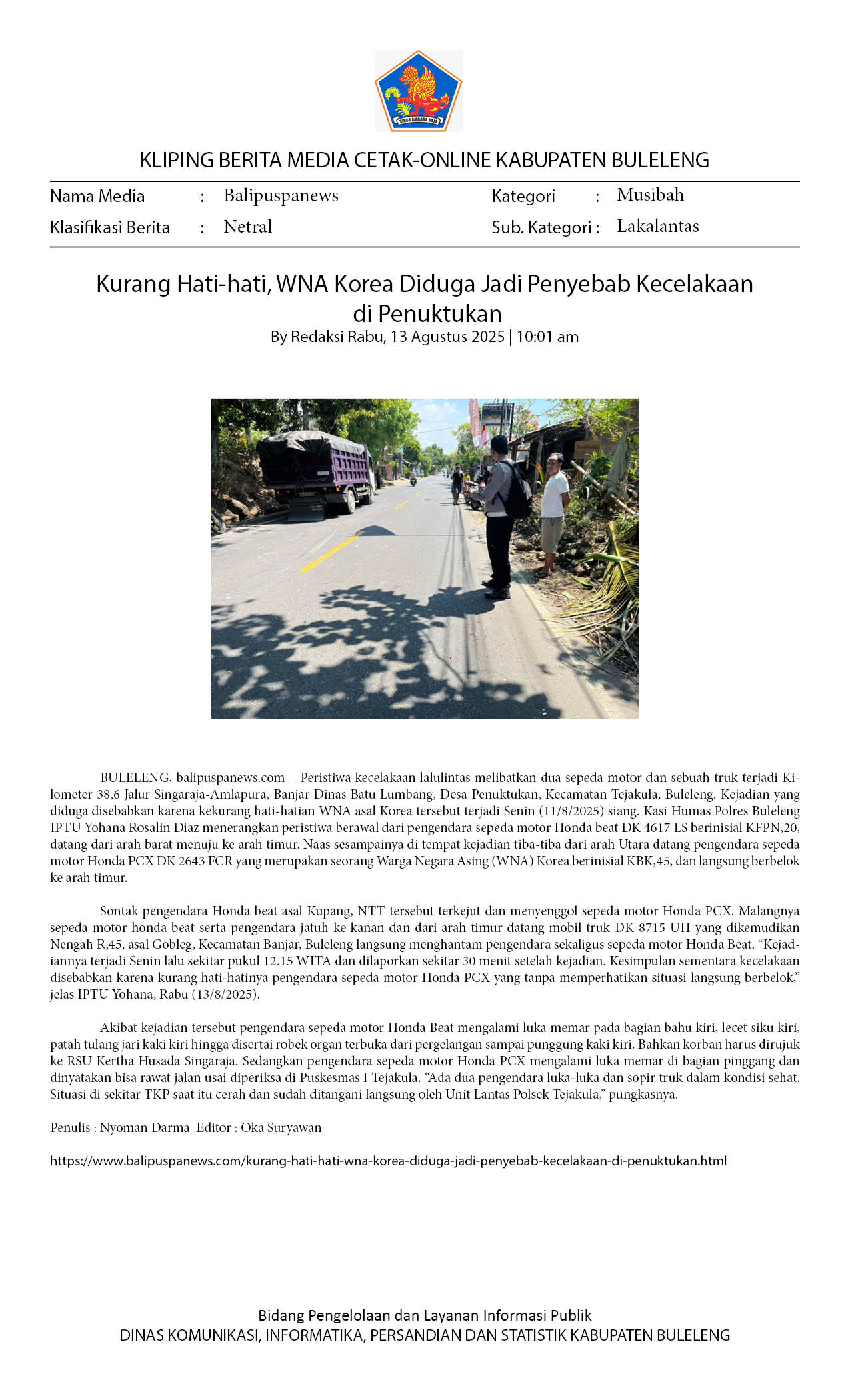 Kurang Hati-hati, WNA Korea Diduga Jadi Penyebab Kecelakaan di Penuktukan