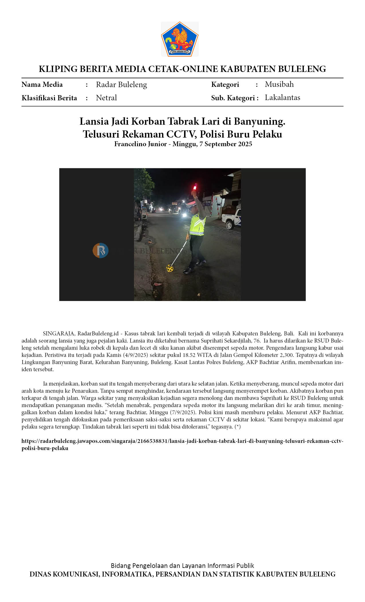 Lansia Jadi Korban Tabrak Lari di Banyuning. Telusuri Rekaman CCTV, Polisi Buru Pelaku