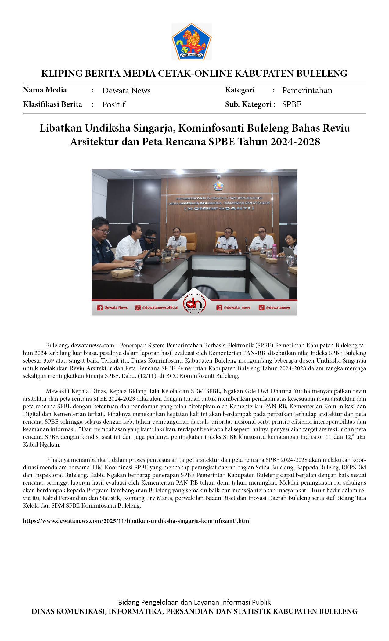 LIBATKAN UNDIKSHA SINGARJA, KOMINFOSANTI BULELENG BAHAS REVIU ARSITEKTUR DAN PETA RENCANA SPBE TAHUN 2024-2028