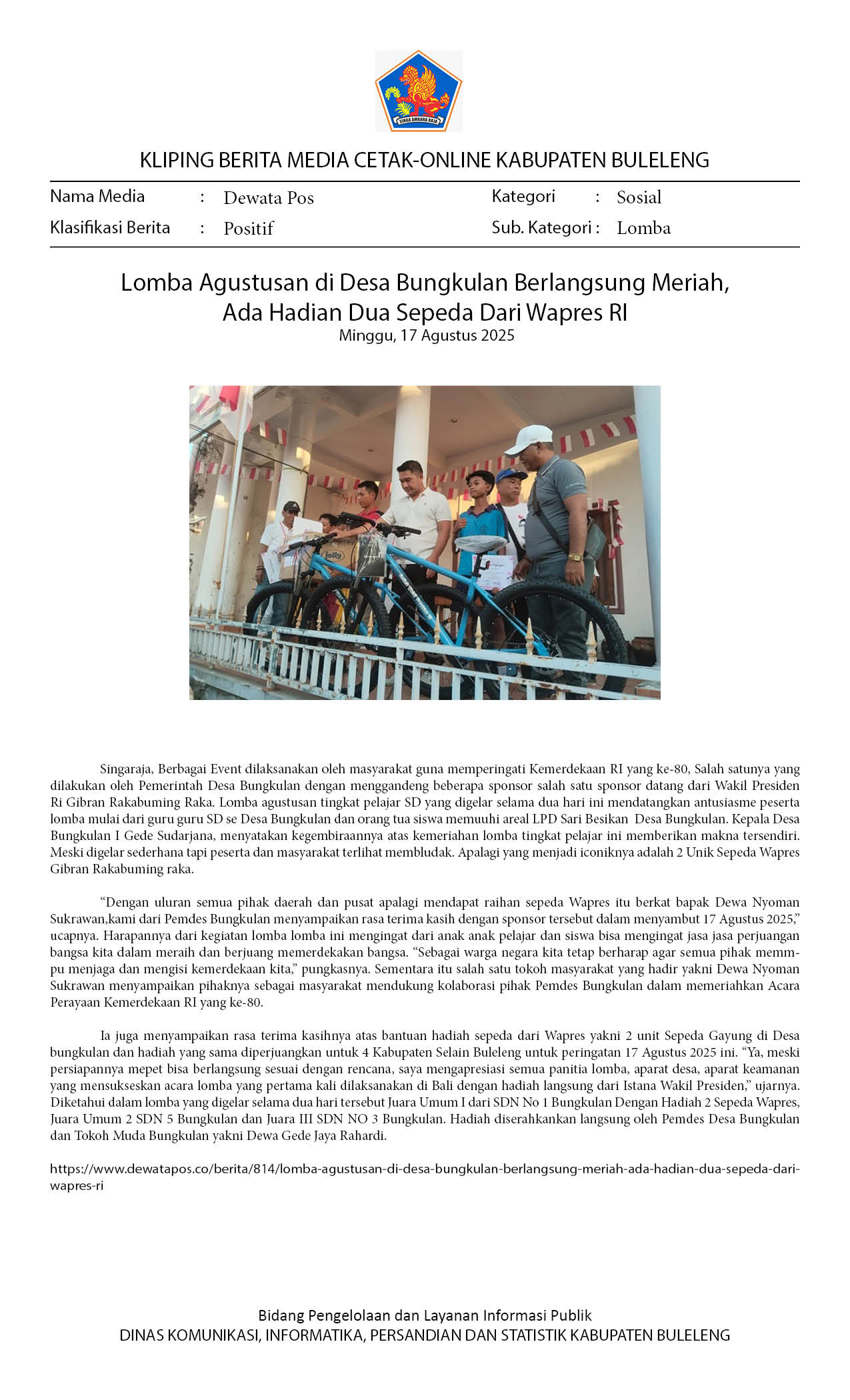 Lomba Agustusan di Desa Bungkulan Berlangsung Meriah, Ada Hadian Dua Sepeda Dari Wapres RI