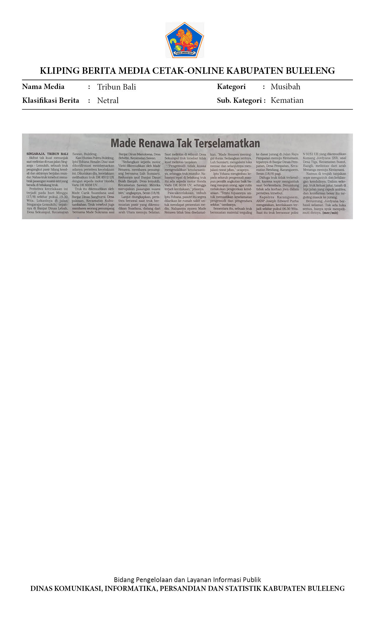 MADE RENAWA TAK TERSELAMATKAN