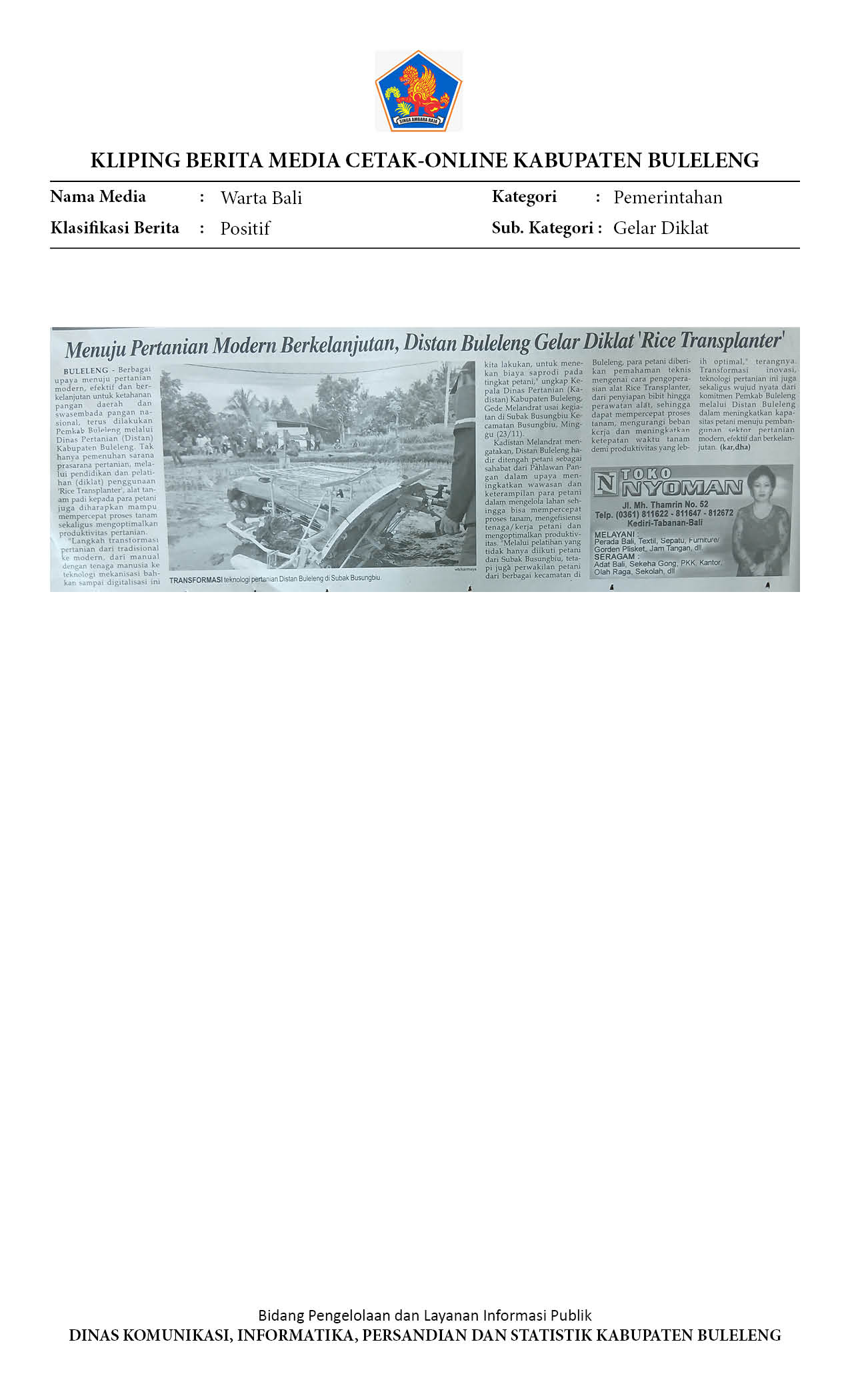 Menuju Pertanian Modern Berkelanjutan, Distan BulelengGelar Diklat Rice Transplanter