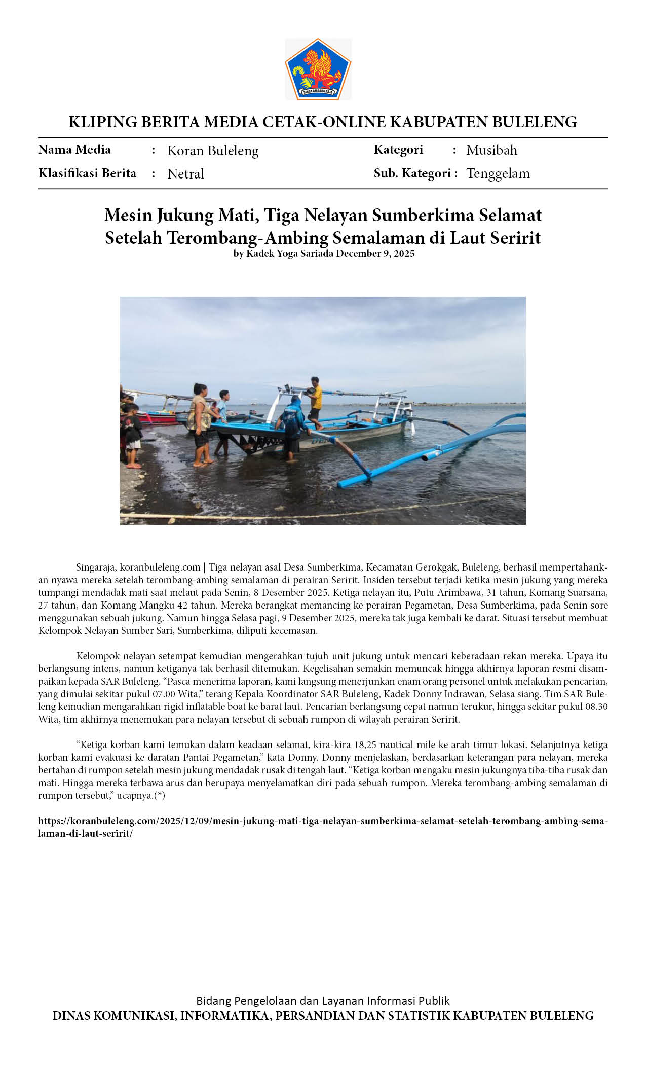 Mesin Jukung Mati, Tiga Nelayan Sumberkima Selamat Setelah Terombang-Ambing Semalaman di Laut Seririt