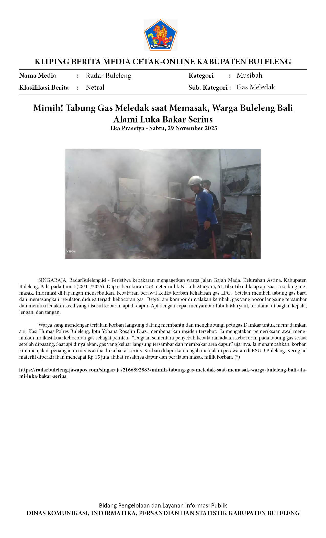 MIMIH! TABUNG GAS MELEDAK SAAT MEMASAK, WARGA BULELENG BALI ALAMI LUKA BAKAR SERIUS