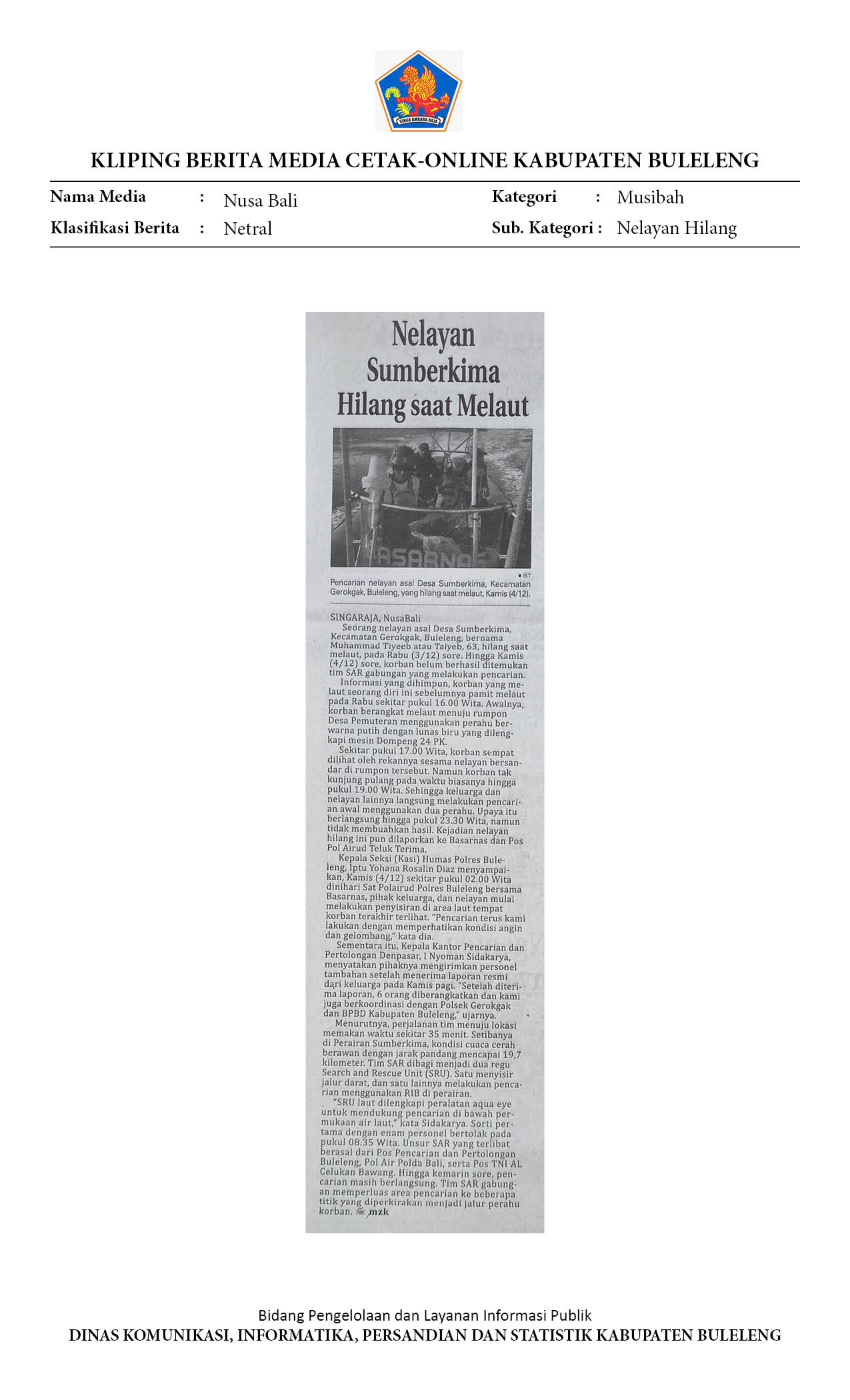 NELAYAN SUMBERKIMA HILANG SAAT MELAUT