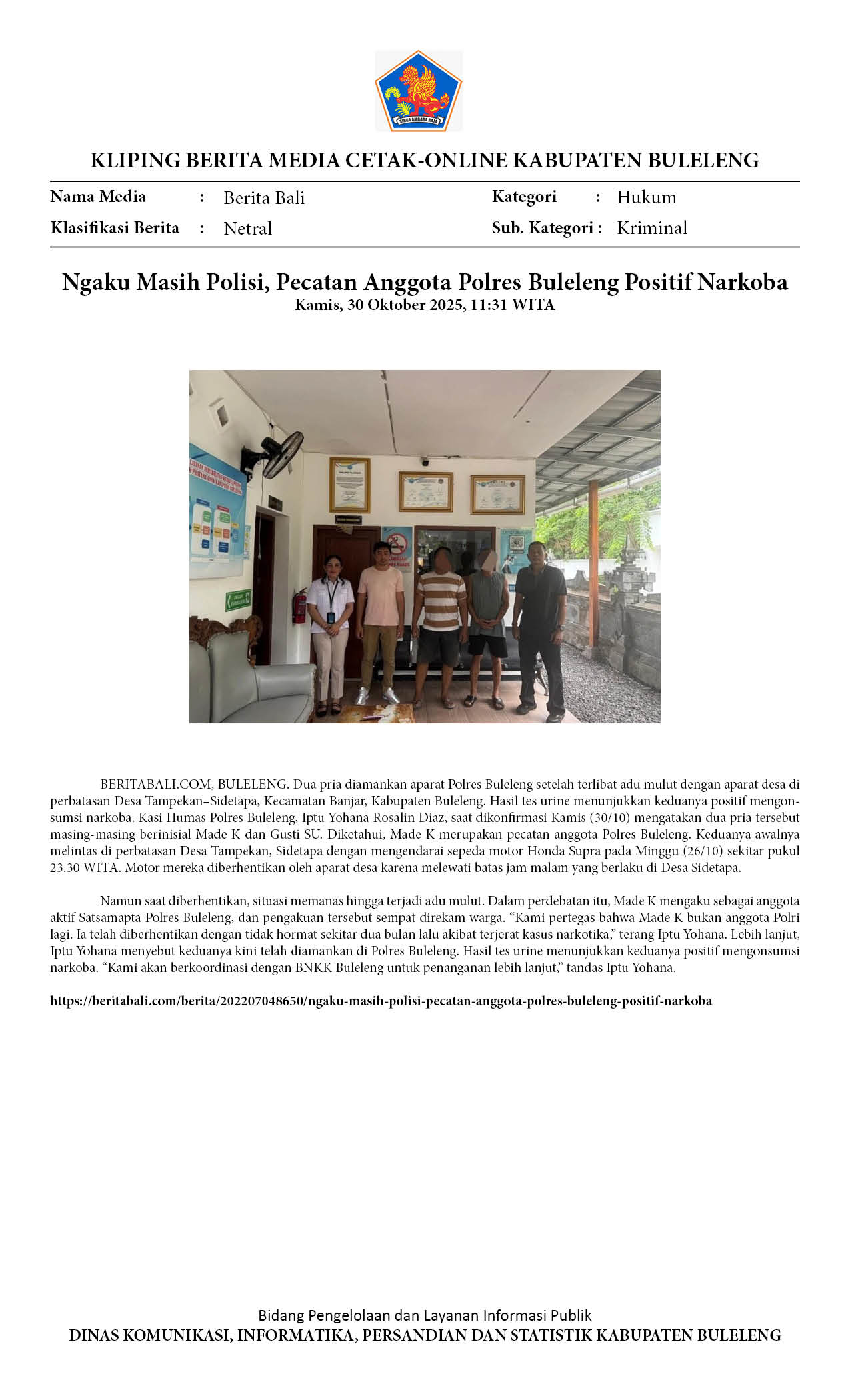 NGAKU MASIH POLISI, PECATAN ANGGOTA POLRES BULELENG POSITIF NARKOBA