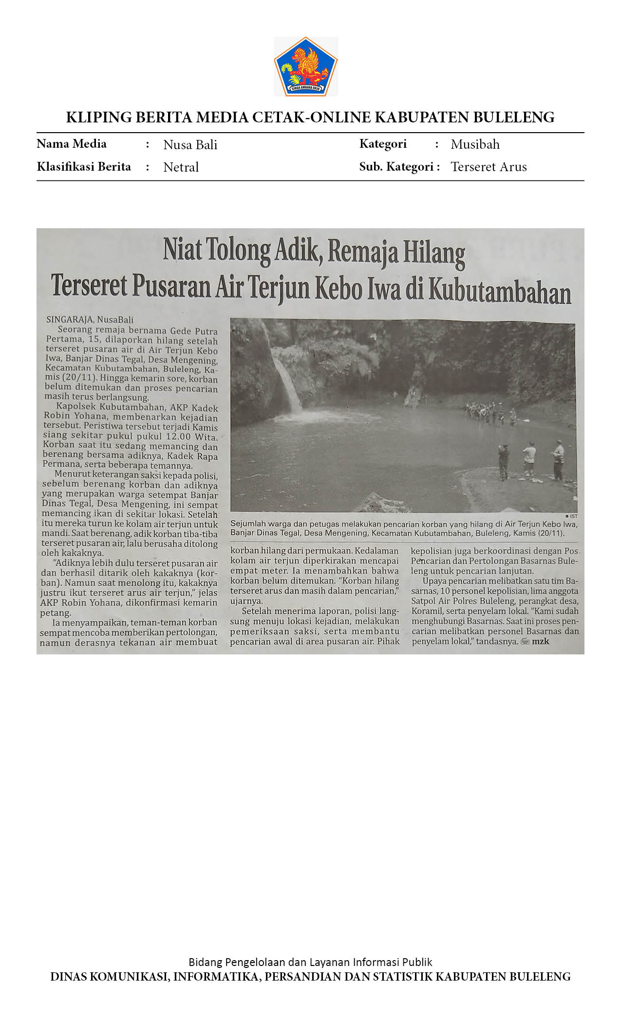 NIAT TOLONG ADIK, REMAJA HILANG TERSERET PUSARAN AIR TERJUN KEBO IWA DI KUBUTAMBAHAN