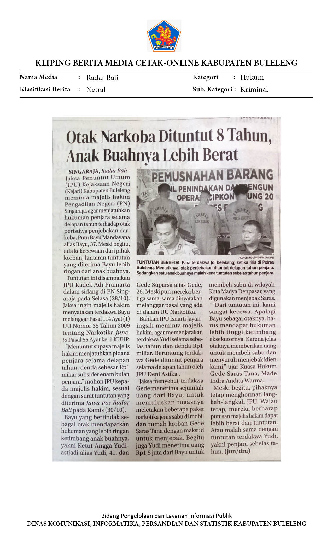 OTAK NARKOBA DITUNTUT 8 TAHUN, ANAK BUAHNYA LEBIH BERAT