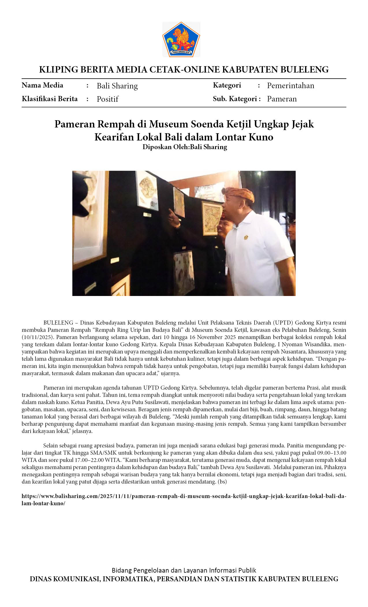 PAMERAN REMPAH DI MUSEUM SOENDA KETJIL UNGKAP JEJAK KEARIFAN LOKAL BALI DALAM LONTAR KUNO