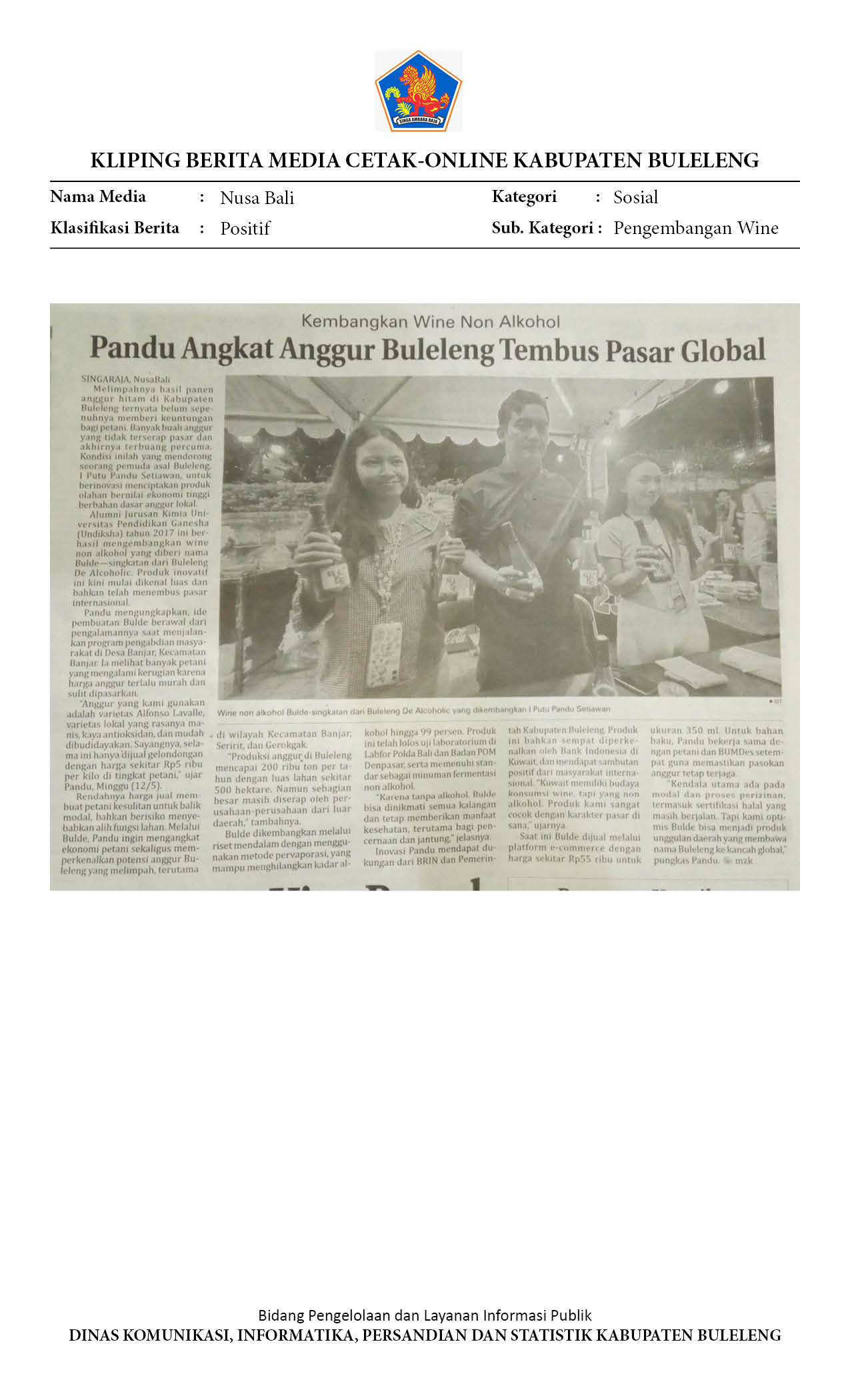 PANDU ANGKAT ANGGUR BULELENG TEMBUS PASAR GLOBAL