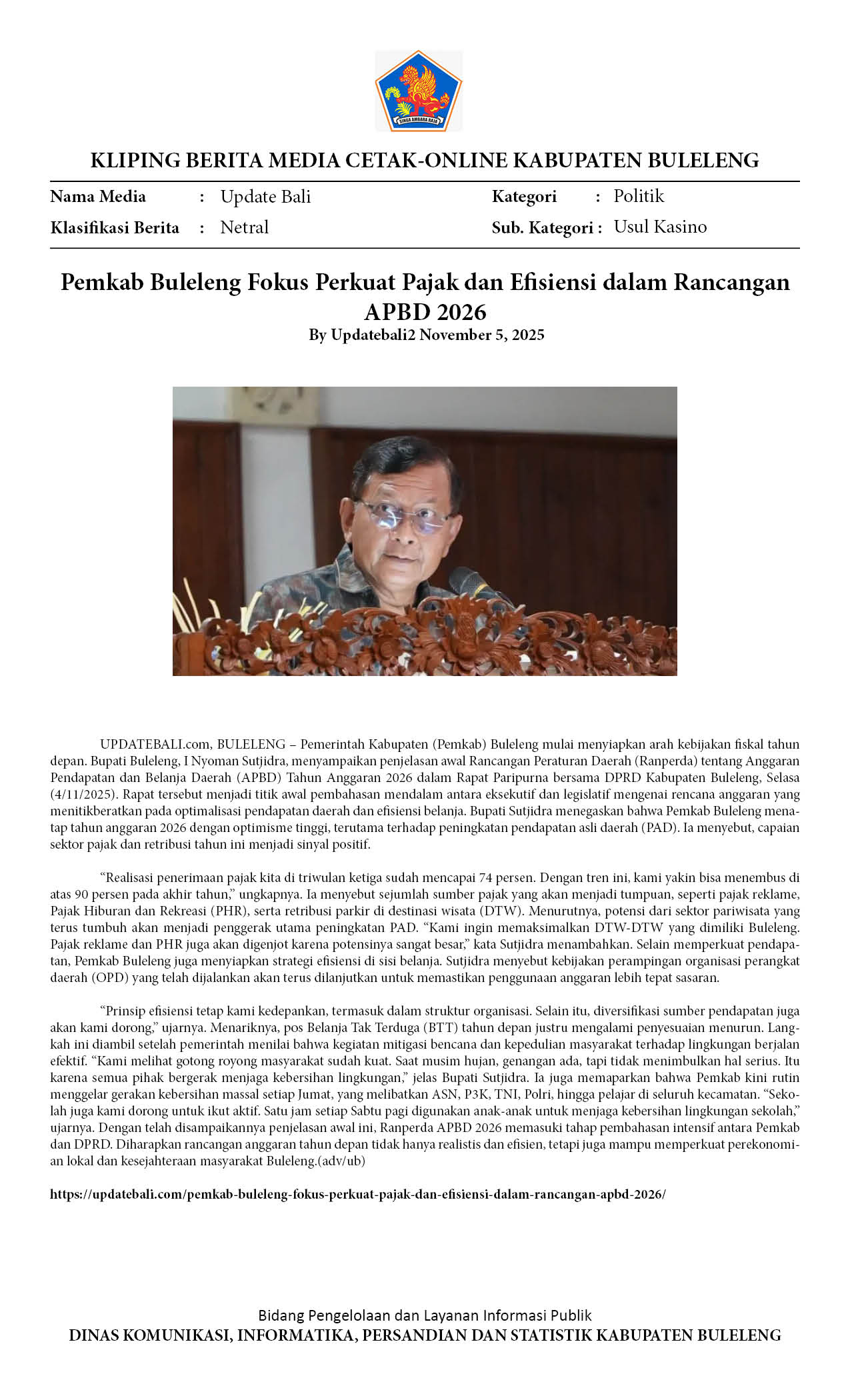PEMKAB BULELENG FOKUS PERKUAT PAJAK DAN EFISIENSI DALAM RANCANGAN APBD 2026
