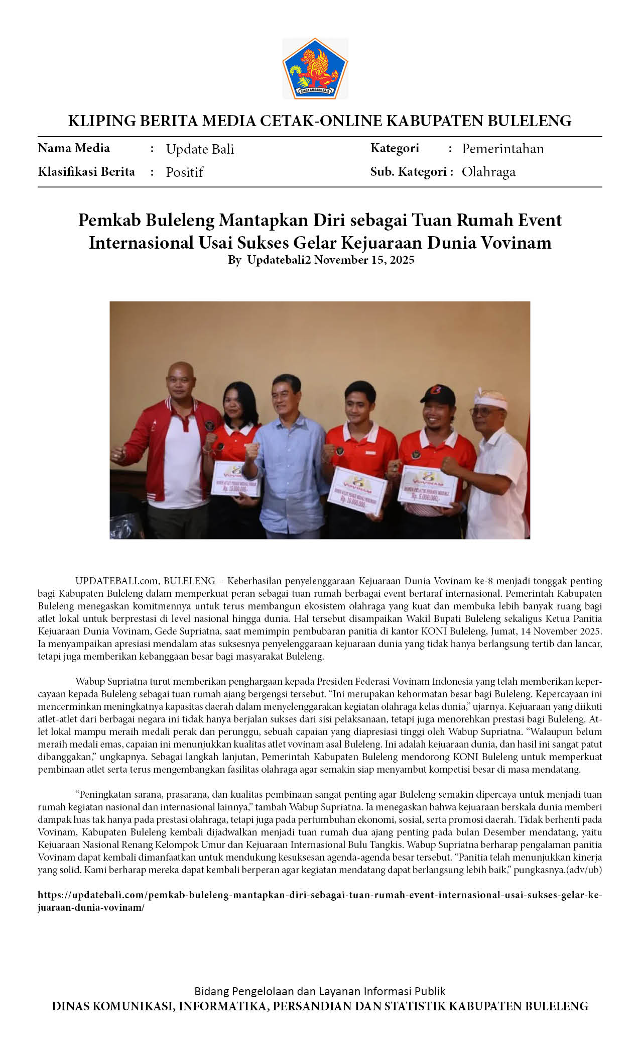 PEMKAB BULELENG MANTAPKAN DIRI SEBAGAI TUAN RUMAH EVENT INTERNASIONAL USAI SUKSES GELAR KEJUARAAN DUNIA VOVINAM