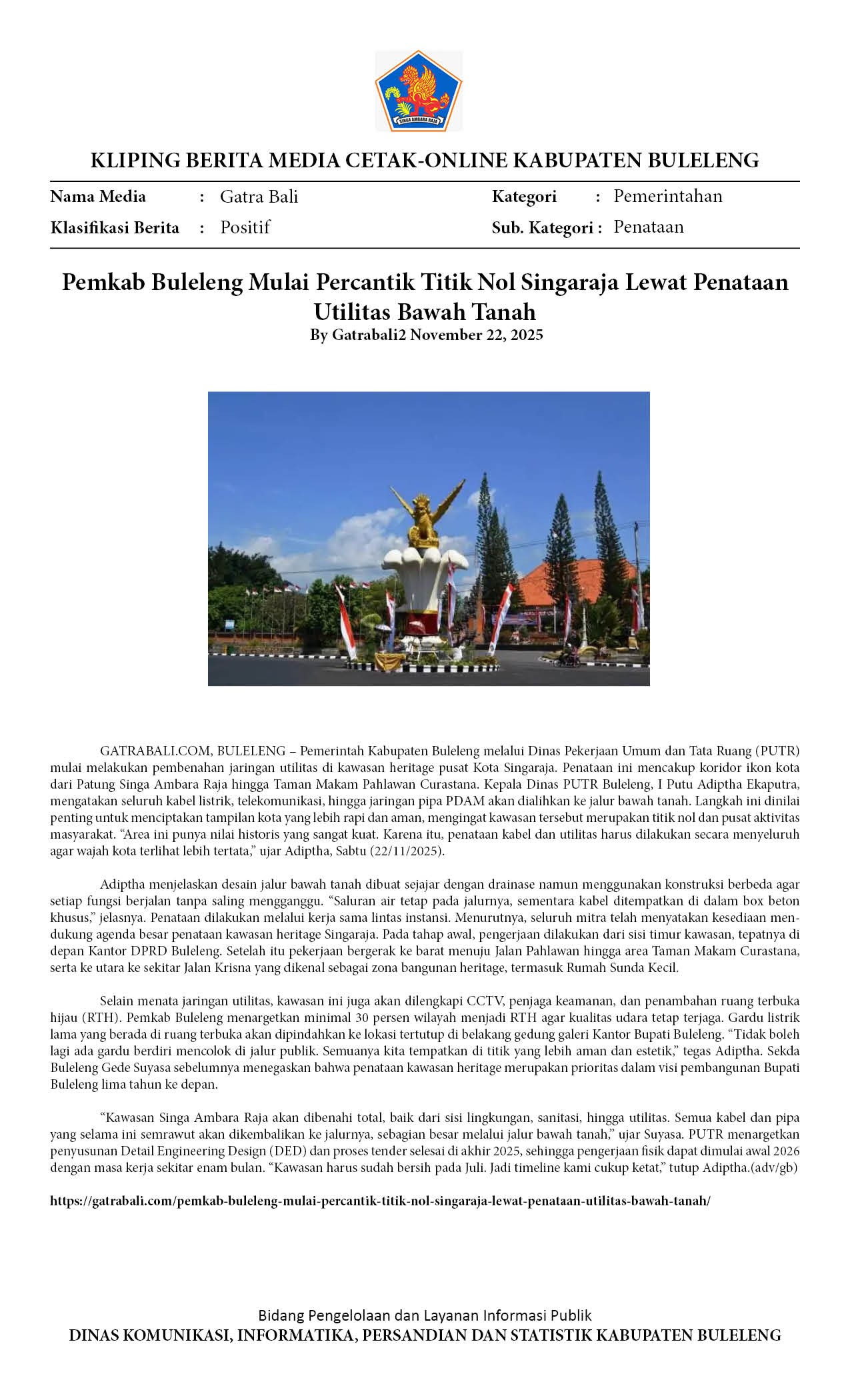 PEMKAB BULELENG MULAI PERCANTIK TITIK NOL SINGARAJA LEWAT PENATAAN UTILITAS BAWAH TANAH