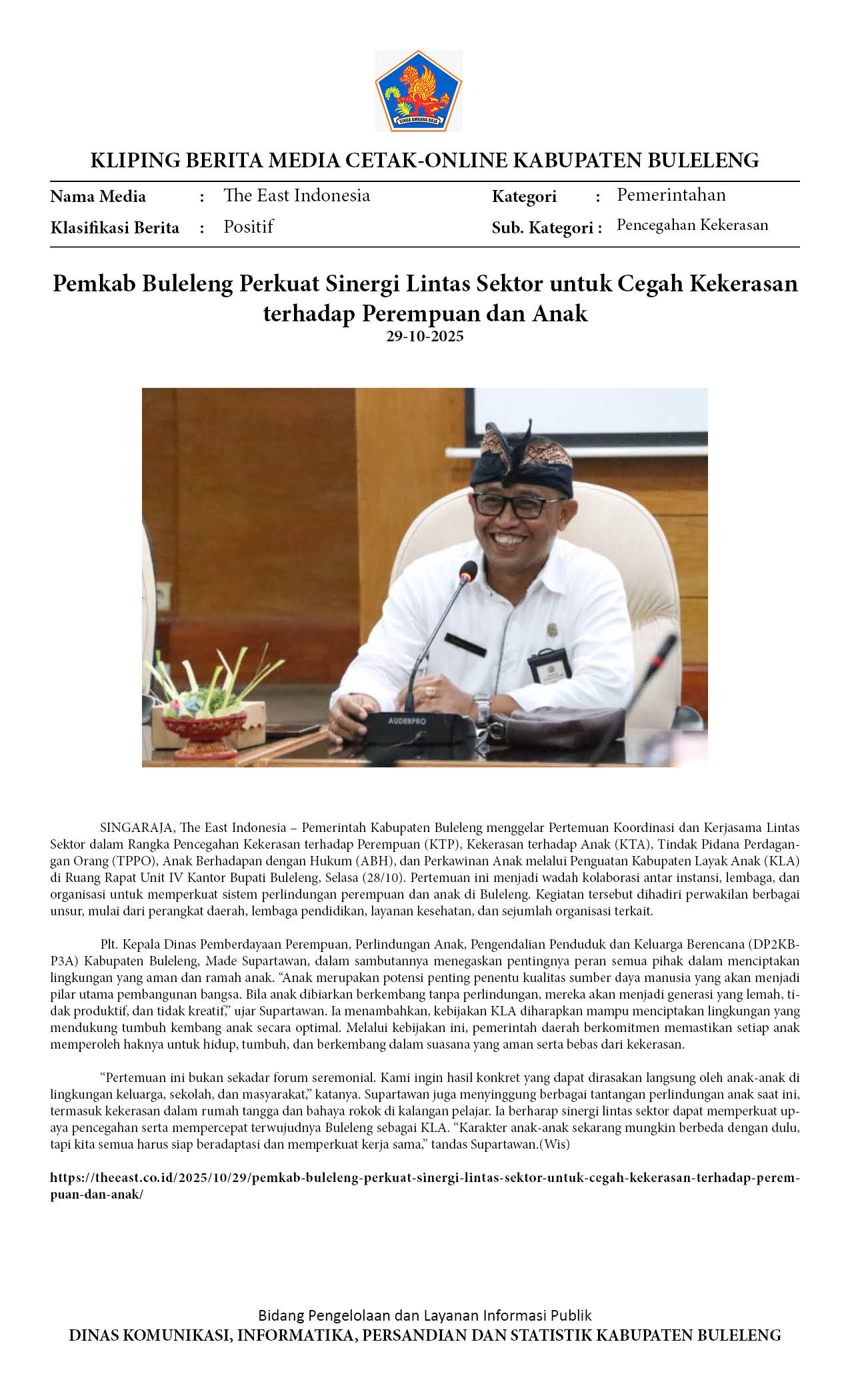 PEMKAB BULELENG PERKUAT SINERGI LINTAS SEKTOR UNTUK CEGAH KEKERASAN TERHADAP PEREMPUAN DAN ANAK