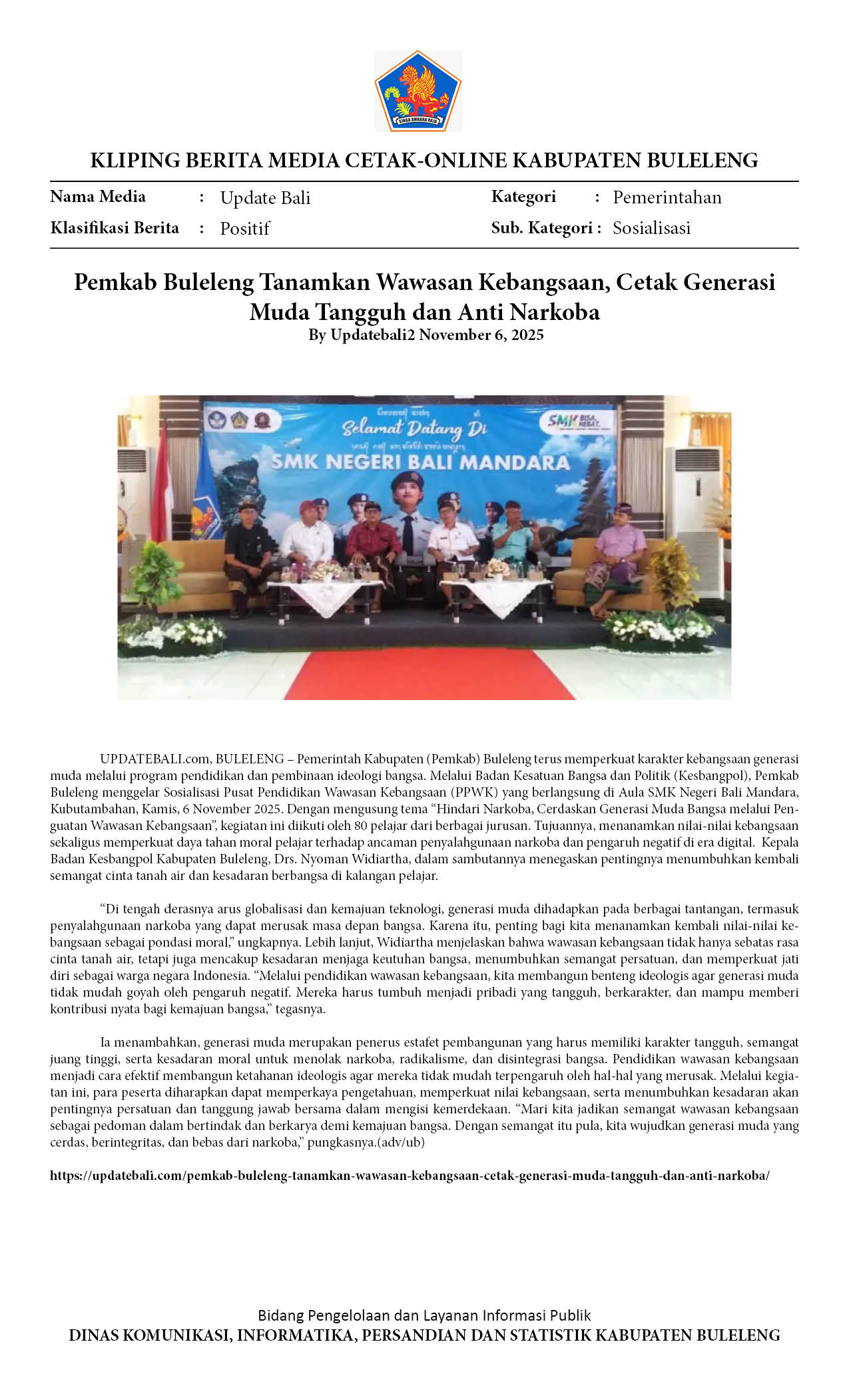 Pemkab Buleleng Tanamkan Wawasan Kebangsaan, Cetak Generasi Muda Tangguh dan Anti Narkoba