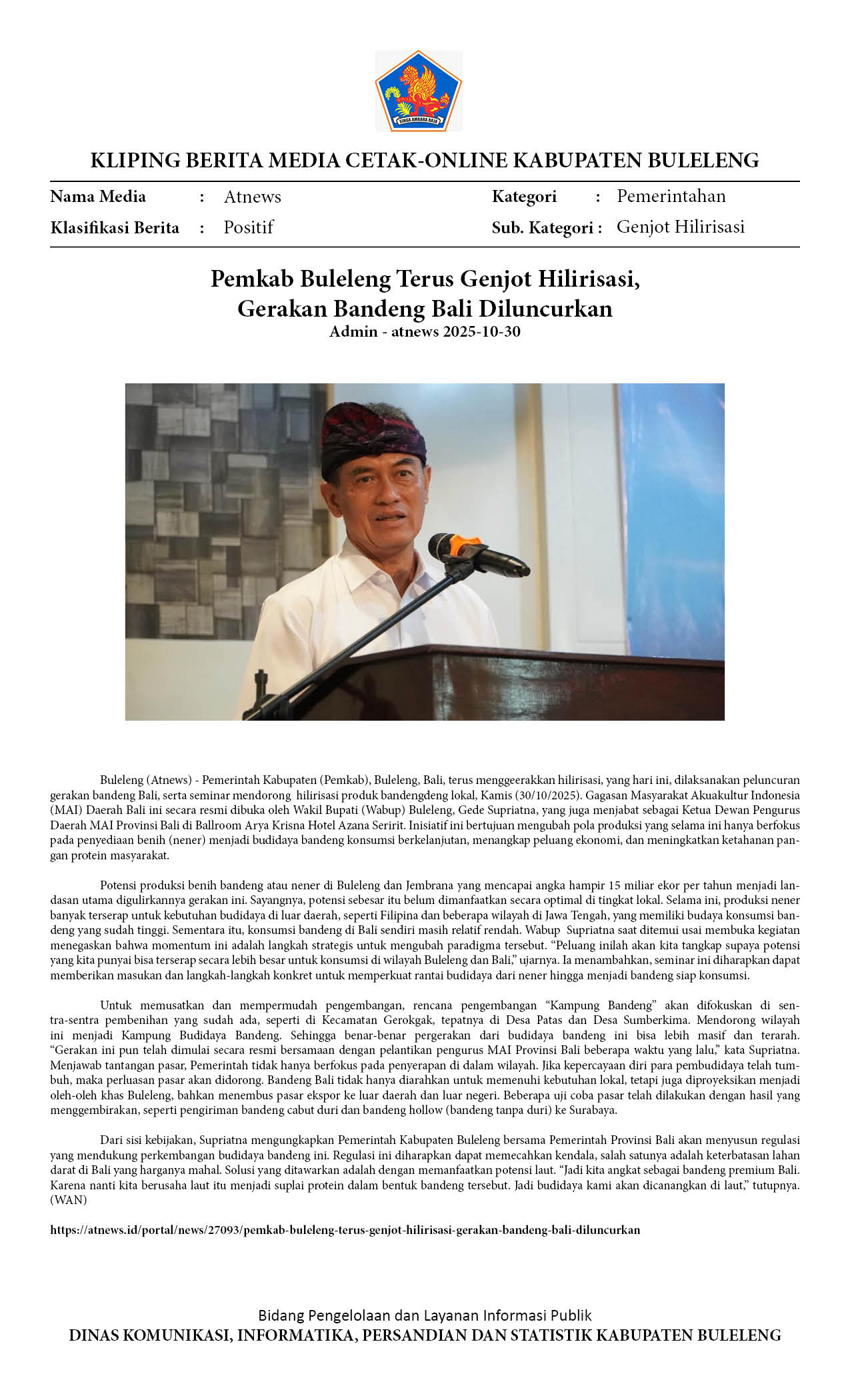 PEMKAB BULELENG TERUS GENJOT HILIRISASI, GERAKAN BANDENG BALI DILUNCURKAN