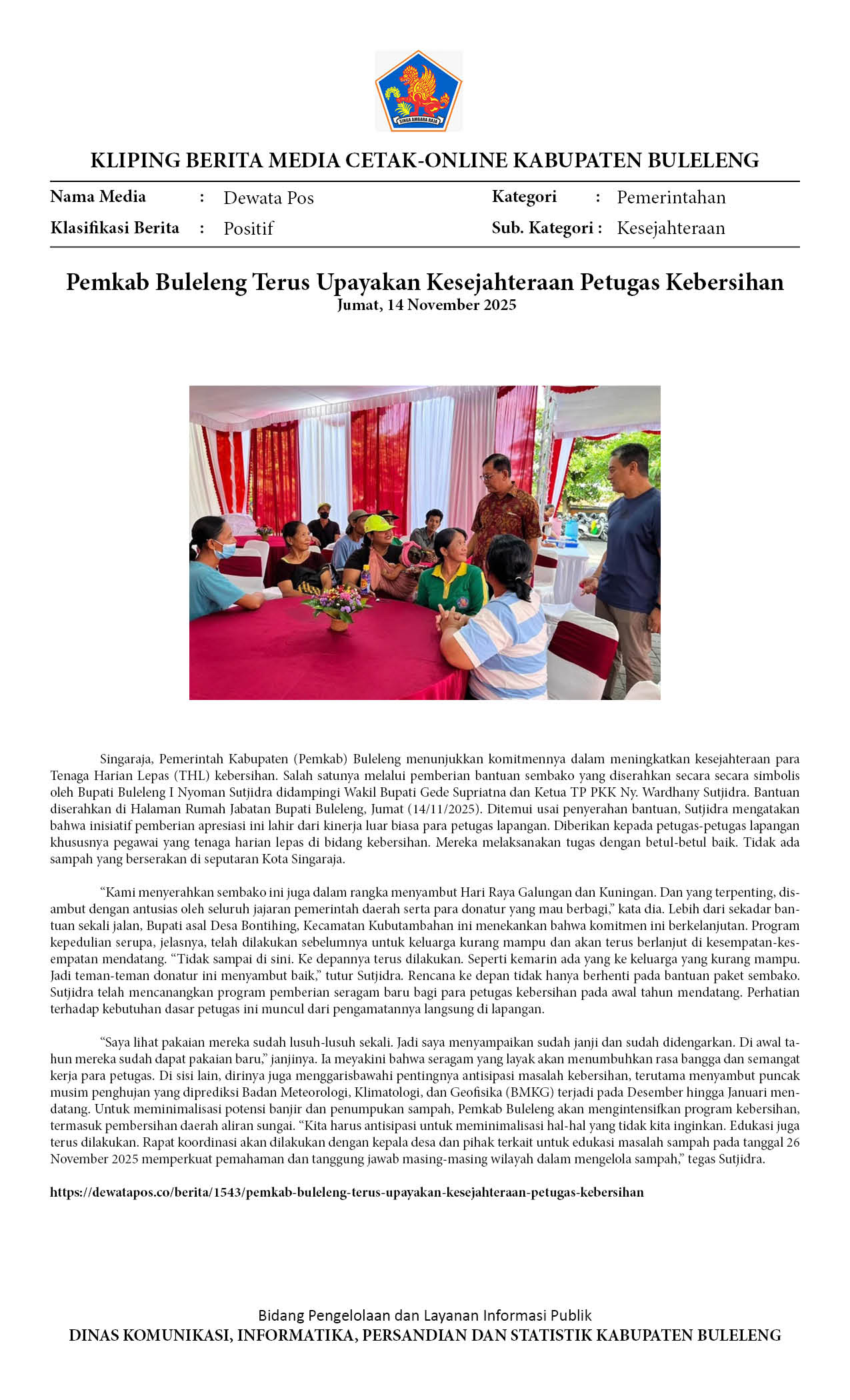 PEMKAB BULELENG TERUS UPAYAKAN KESEJAHTERAAN PETUGAS KEBERSIHAN