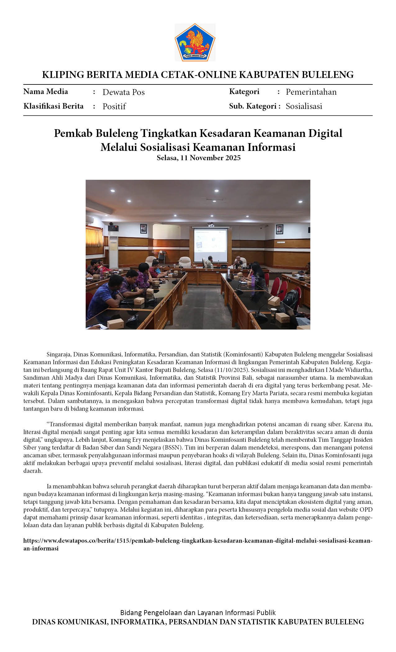 Pemkab Buleleng Tingkatkan Kesadaran Keamanan Digital Melalui Sosialisasi Keamanan Informasi