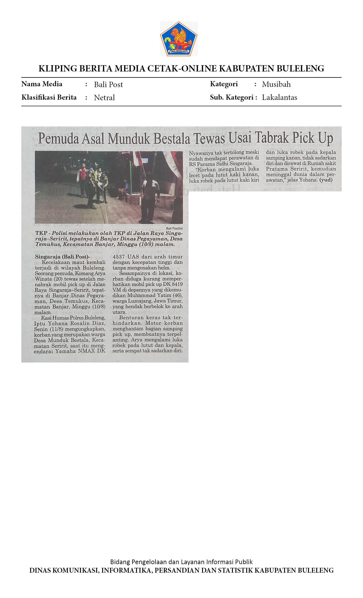 Pemuda Asal Munduk Bestala Tewas Usai Tabrak Pick Up