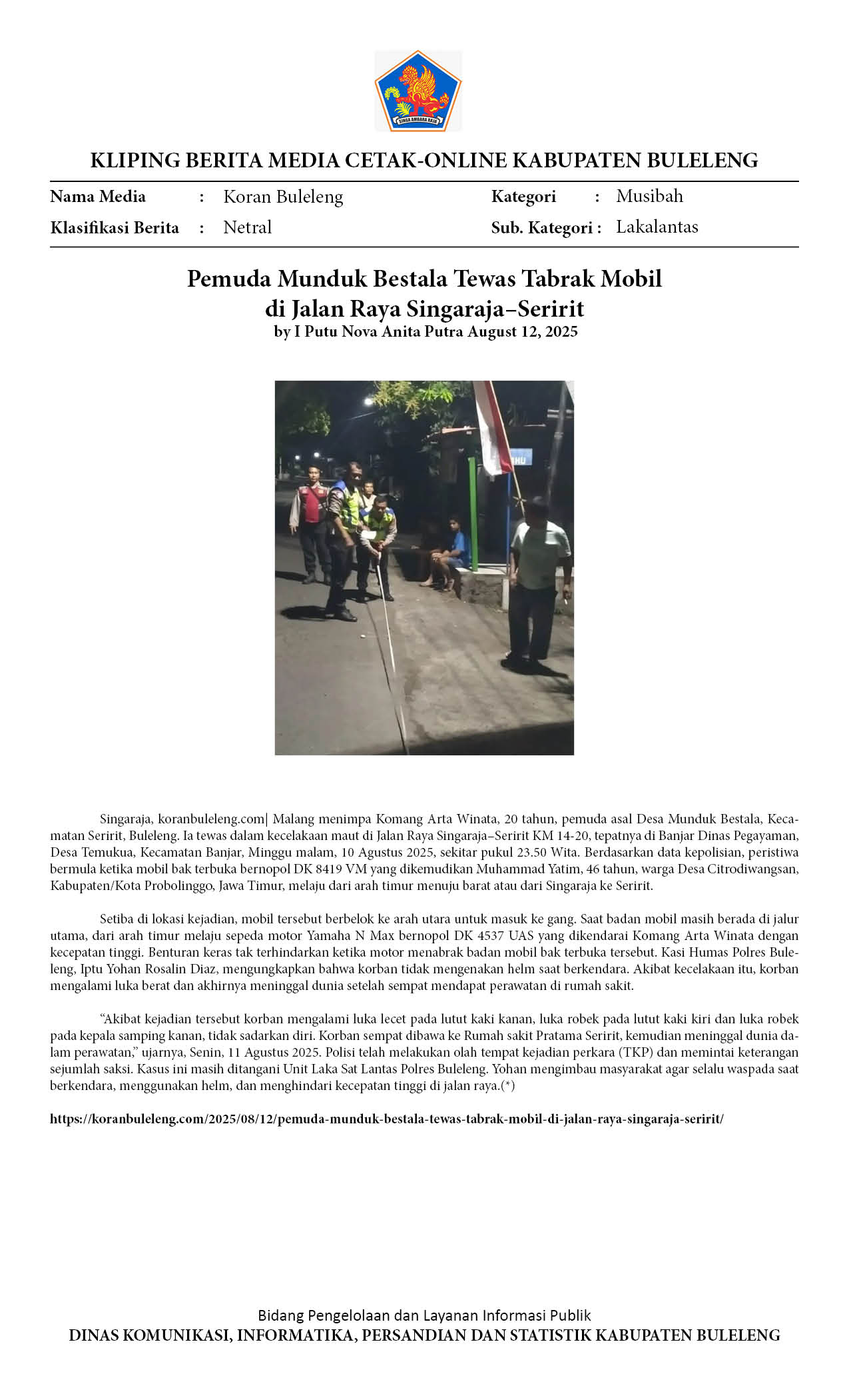 PEMUDA MUNDUK BESTALA TEWAS TABRAK MOBIL DI JALAN RAYA SINGARAJA–SERIRIT