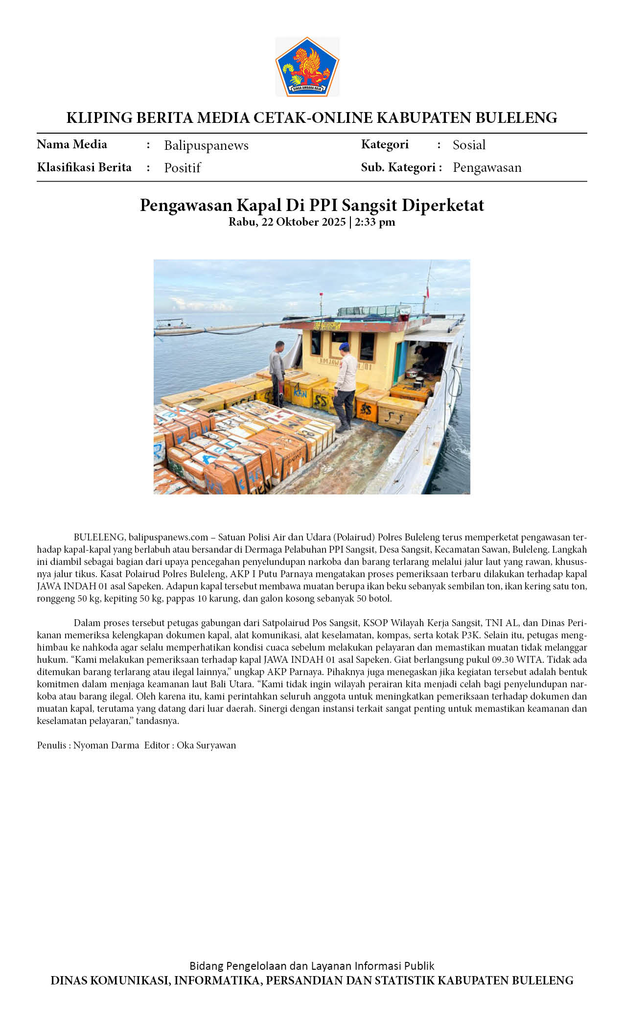 Pengawasan Kapal Di PPI Sangsit Diperketat