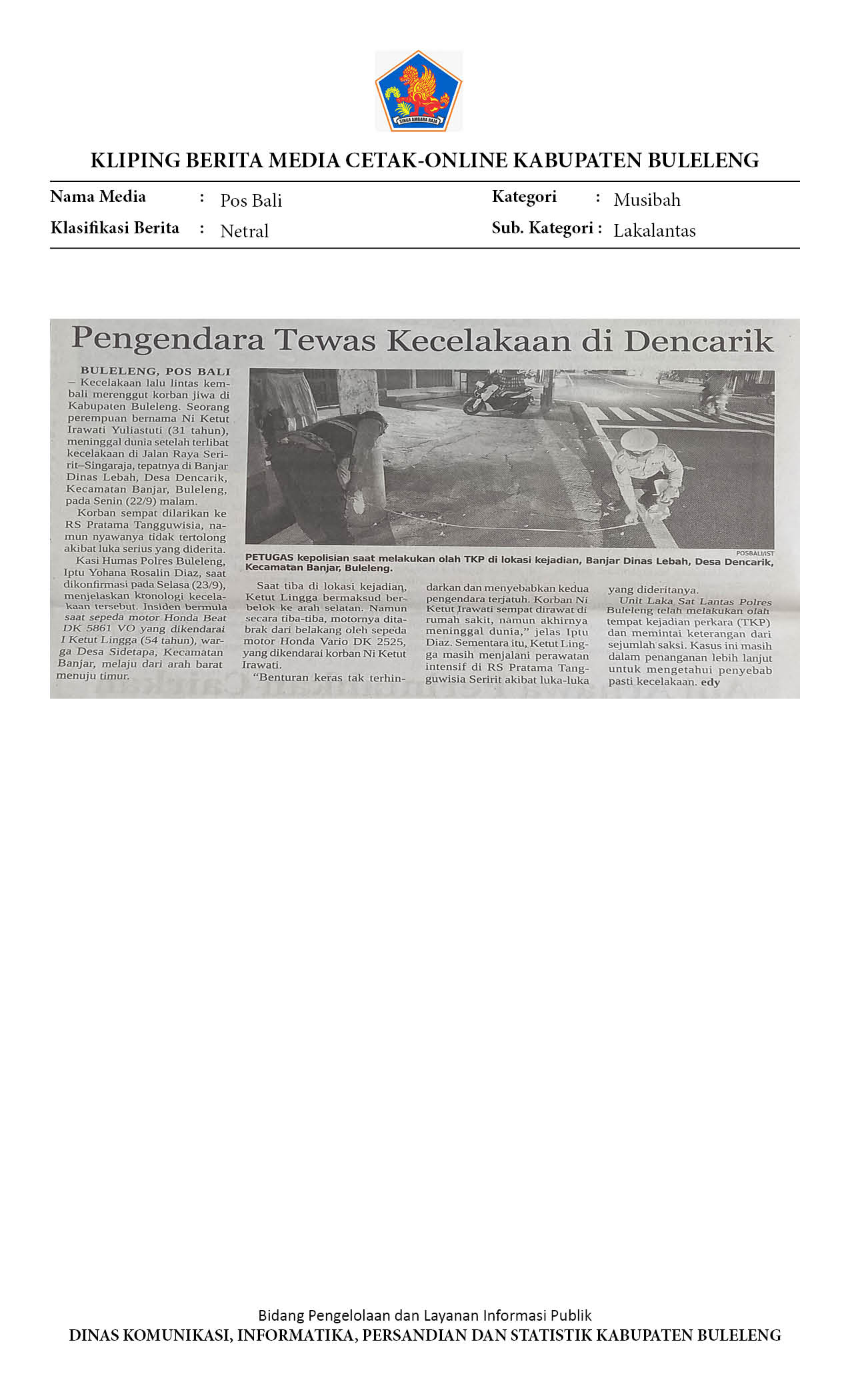 PENGENDARA TEWAS KECELAKAAN DI DENCARIK