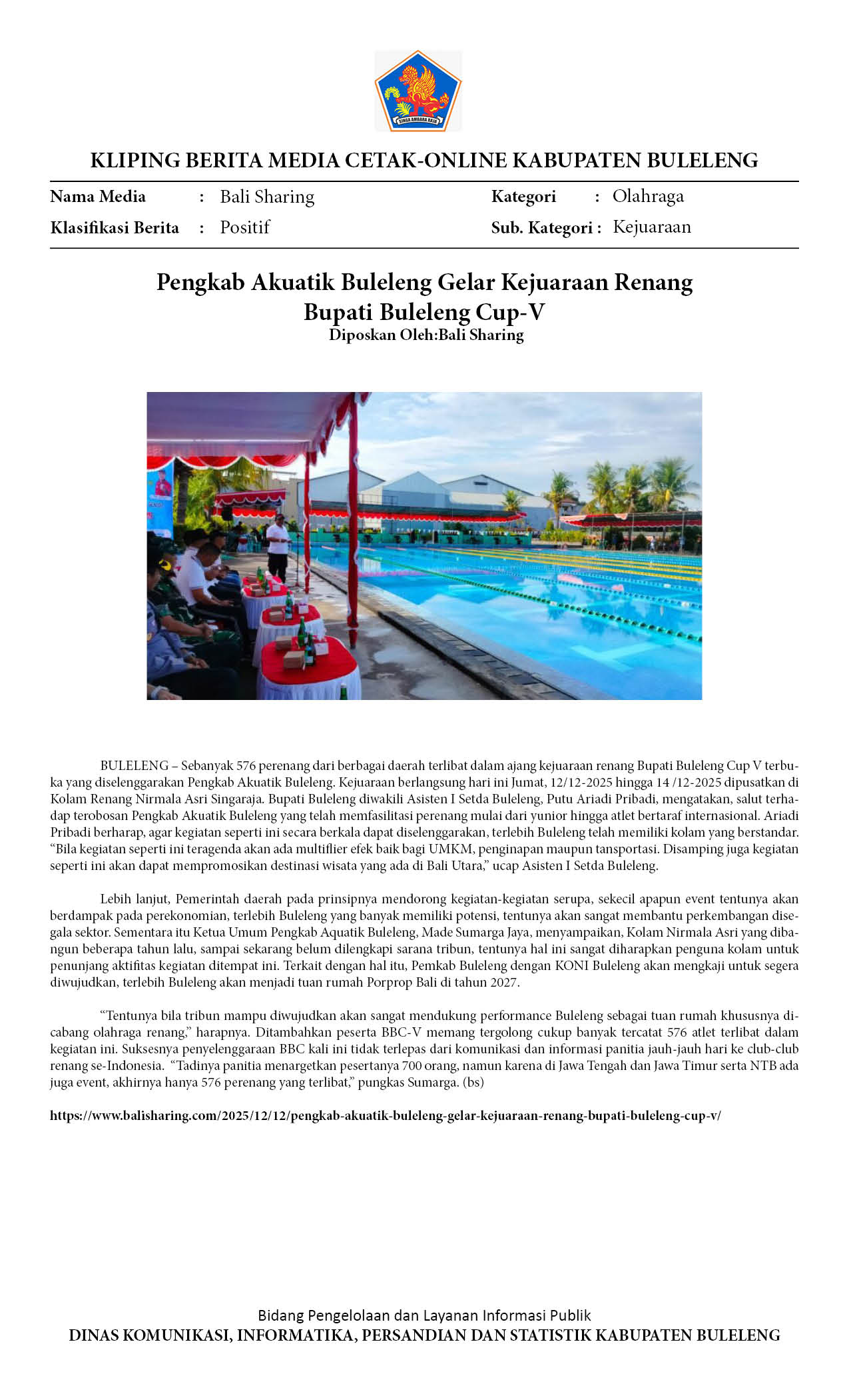 PENGKAB AKUATIK BULELENG GELAR KEJUARAAN RENANG BUPATI BULELENG CUP-V
