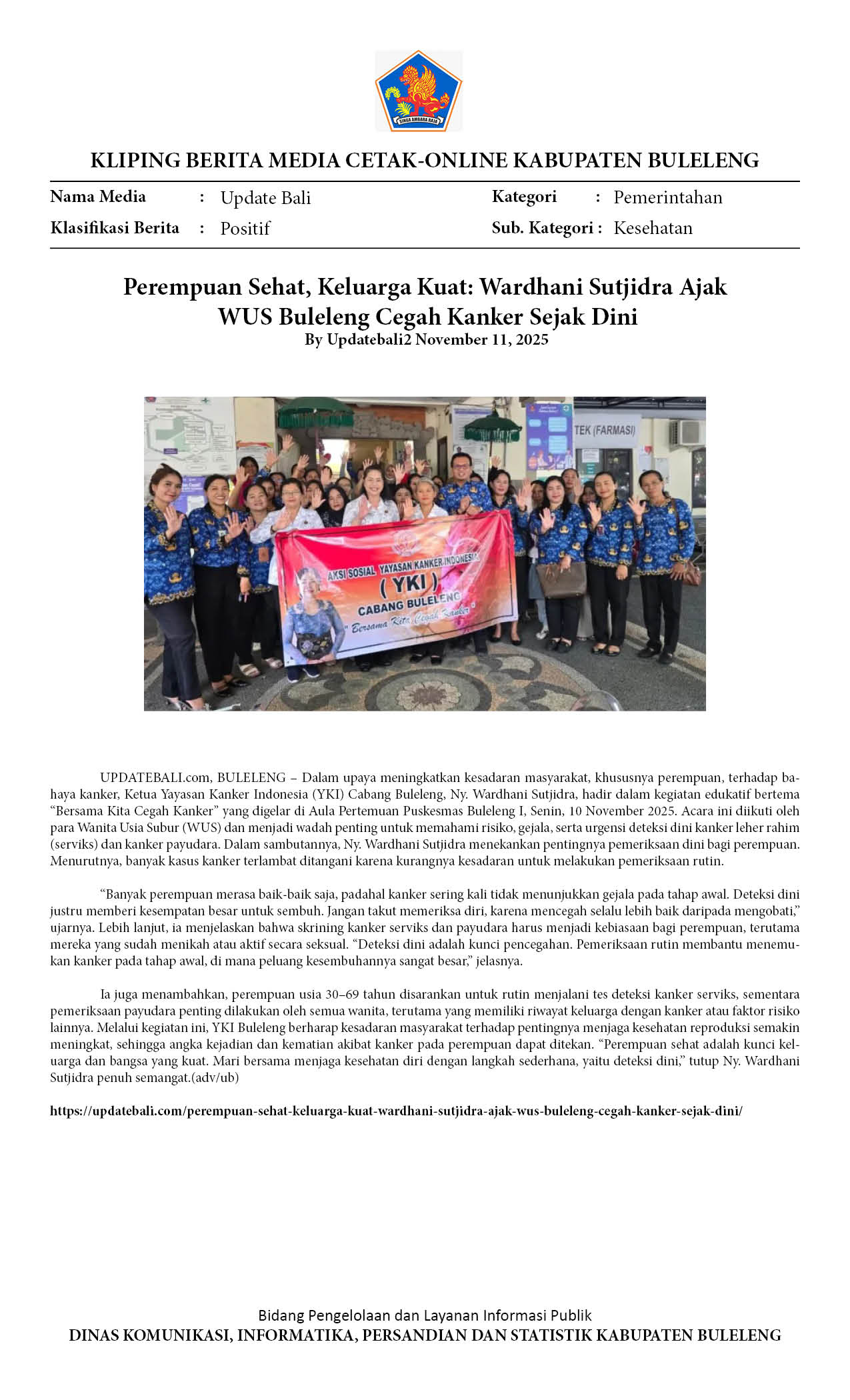 PEREMPUAN SEHAT, KELUARGA KUAT: WARDHANI SUTJIDRA AJAK WUS BULELENG CEGAH KANKER SEJAK DINI