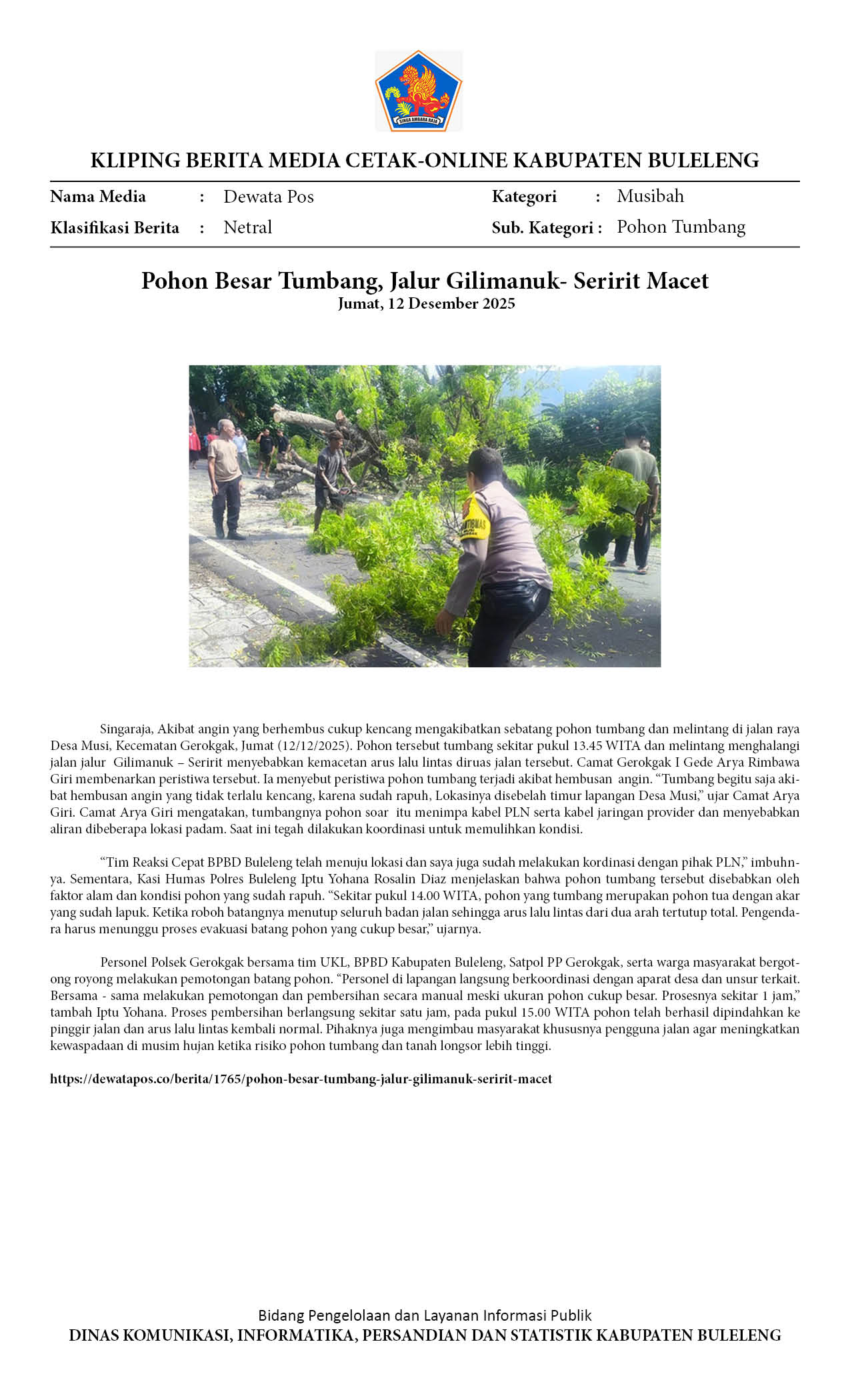 Pohon Besar Tumbang, Jalur Gilimanuk- Seririt Macet