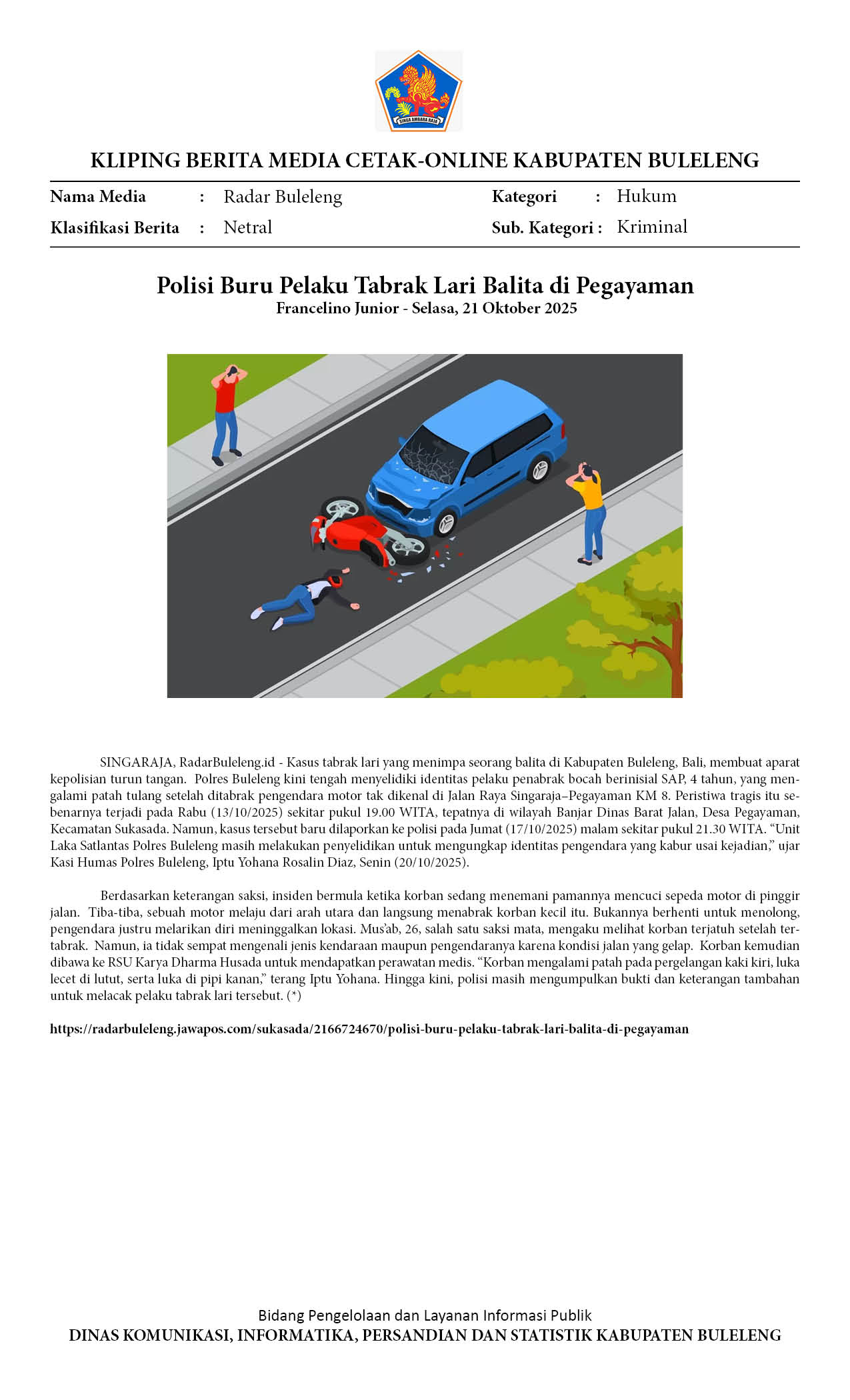 POLISI BURU PELAKU TABRAK LARI BALITA DI PEGAYAMAN