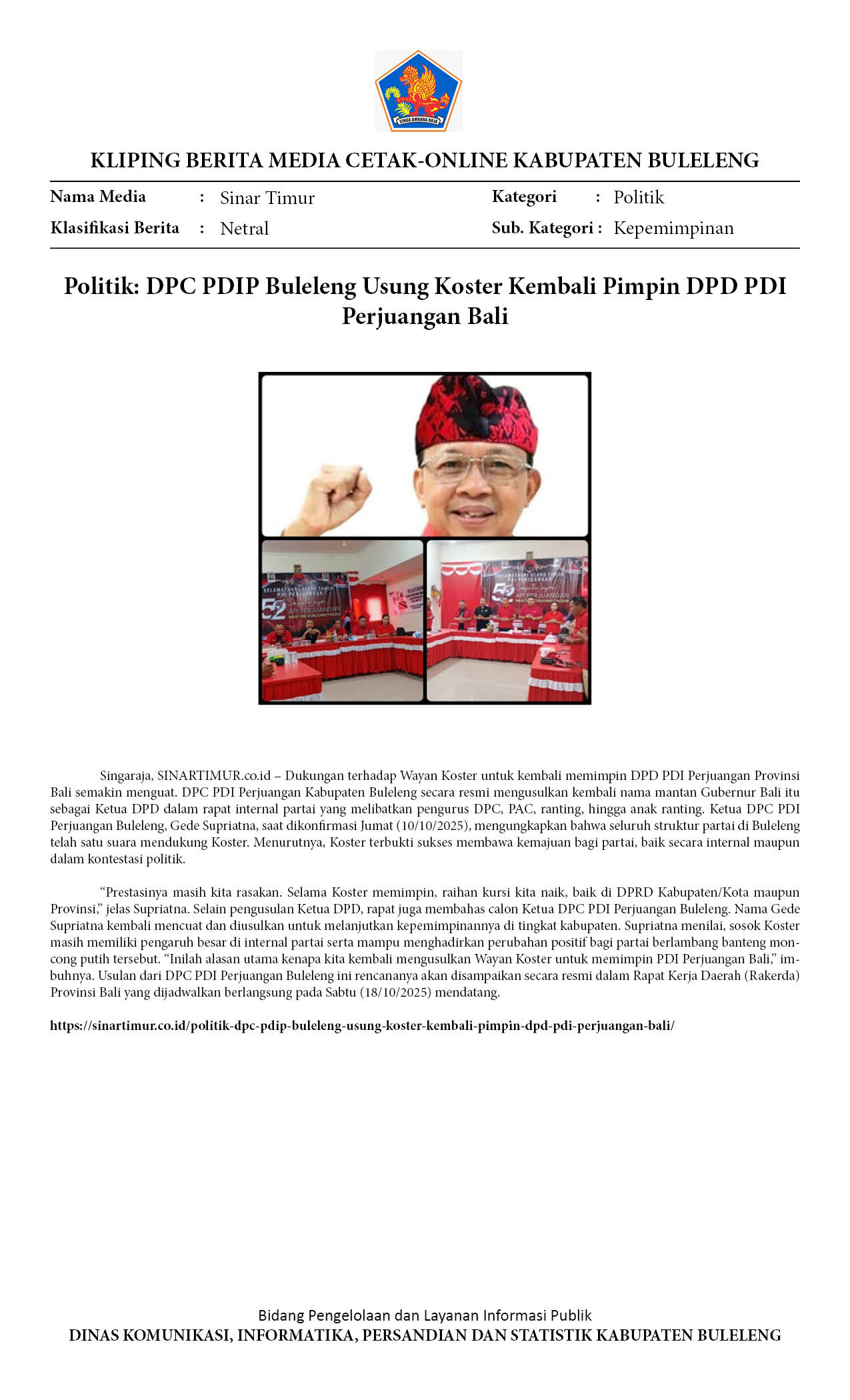 Politik: DPC PDIP Buleleng Usung Koster Kembali Pimpin DPD PDI Perjuangan Bali