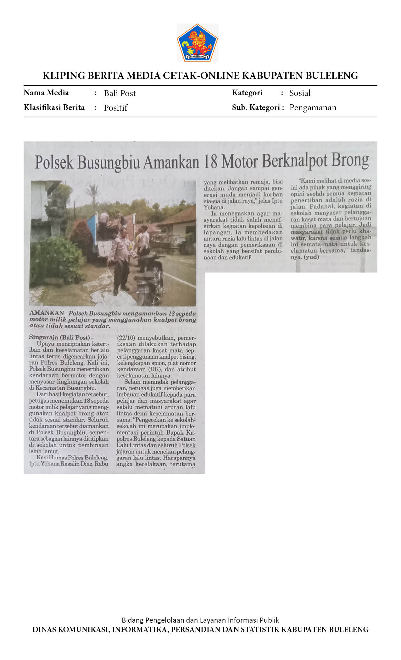 POLSEK BUSUNGBIU AMANKAN 18 MOTOR BERKNALPOT BRONG