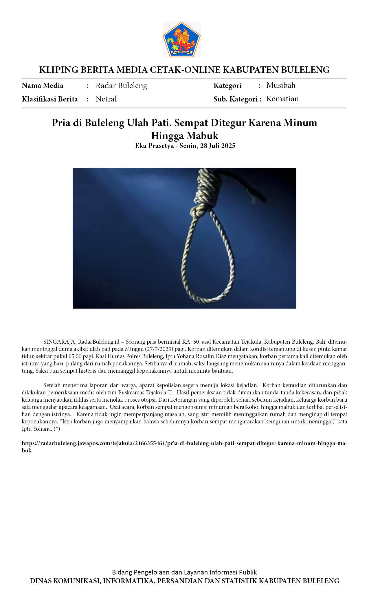 PRIA DI BULELENG ULAH PATI. SEMPAT DITEGUR KARENA MINUM HINGGA MABUK