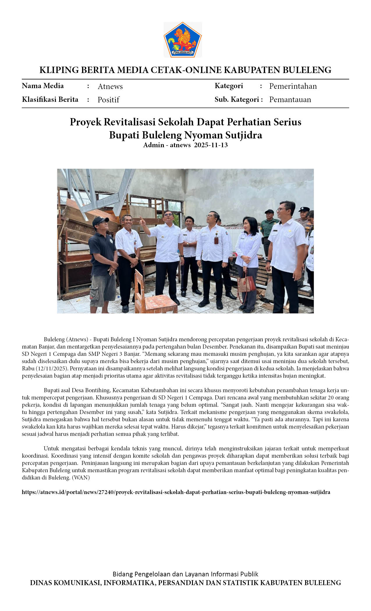 PROYEK REVITALISASI SEKOLAH DAPAT PERHATIAN SERIUS BUPATI BULELENG NYOMAN SUTJIDRA