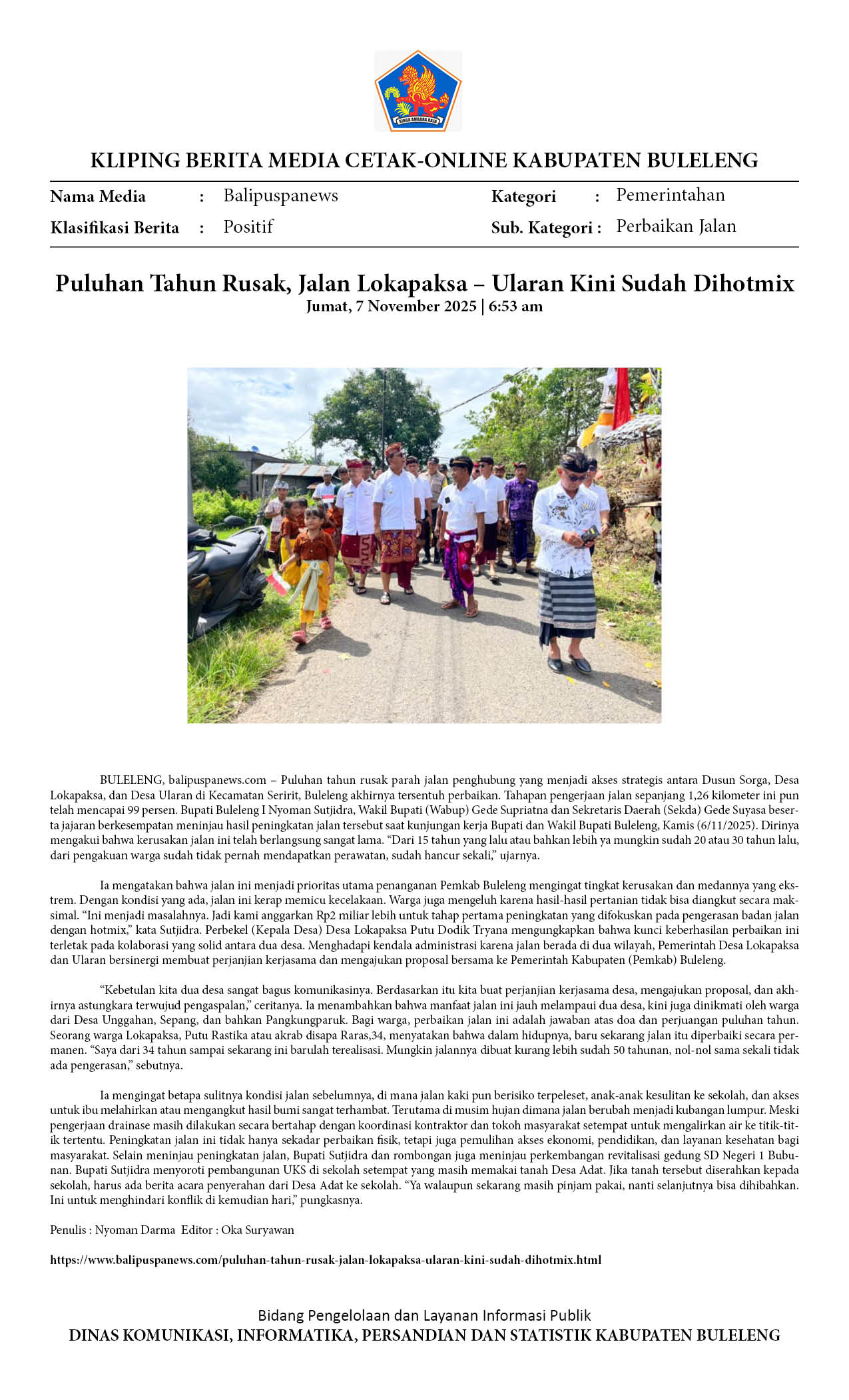 PULUHAN TAHUN RUSAK, JALAN LOKAPAKSA – ULARAN KINI SUDAH DIHOTMIX