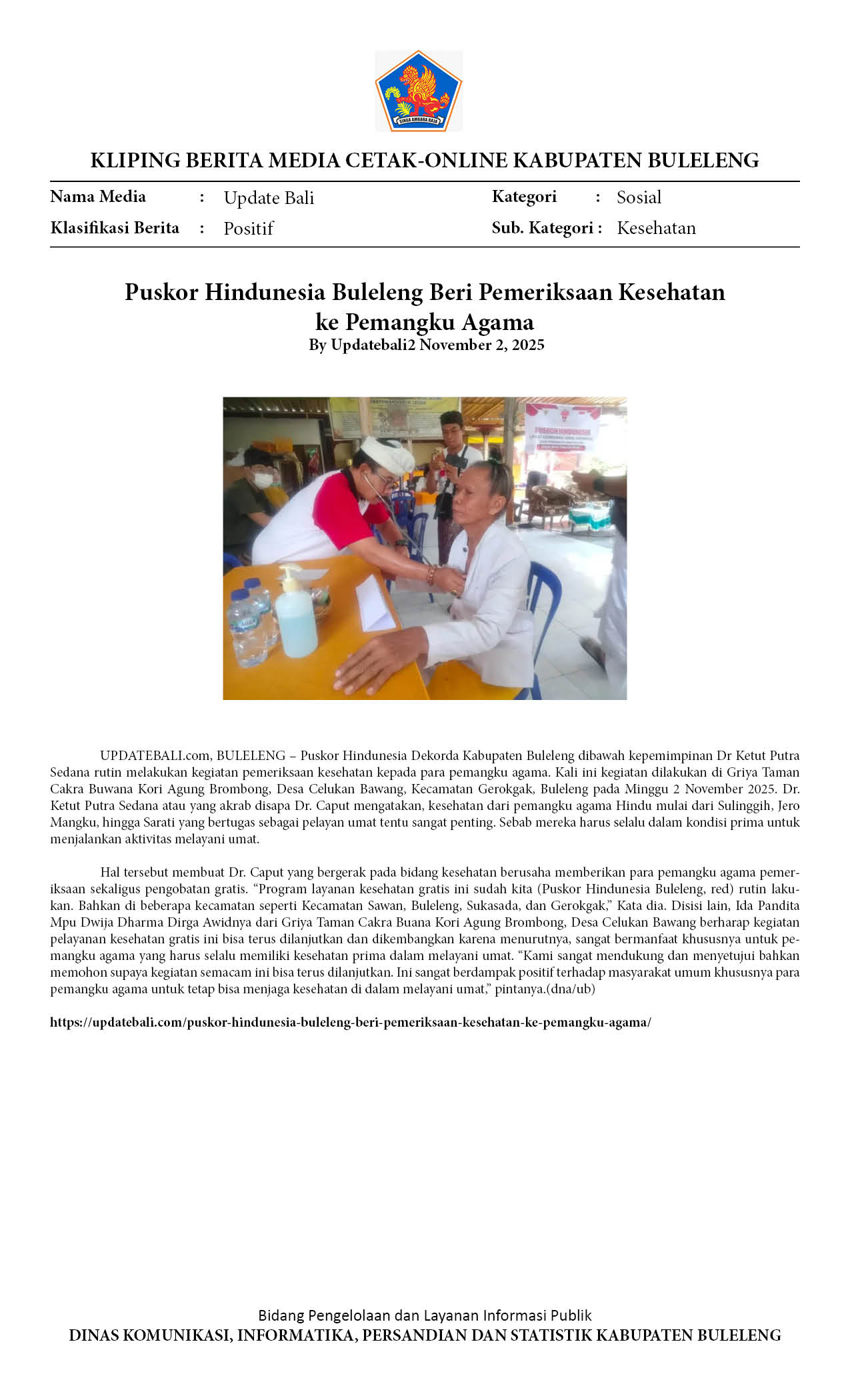 PUSKOR HINDUNESIA BULELENG BERI PEMERIKSAAN KESEHATAN KE PEMANGKU AGAMA